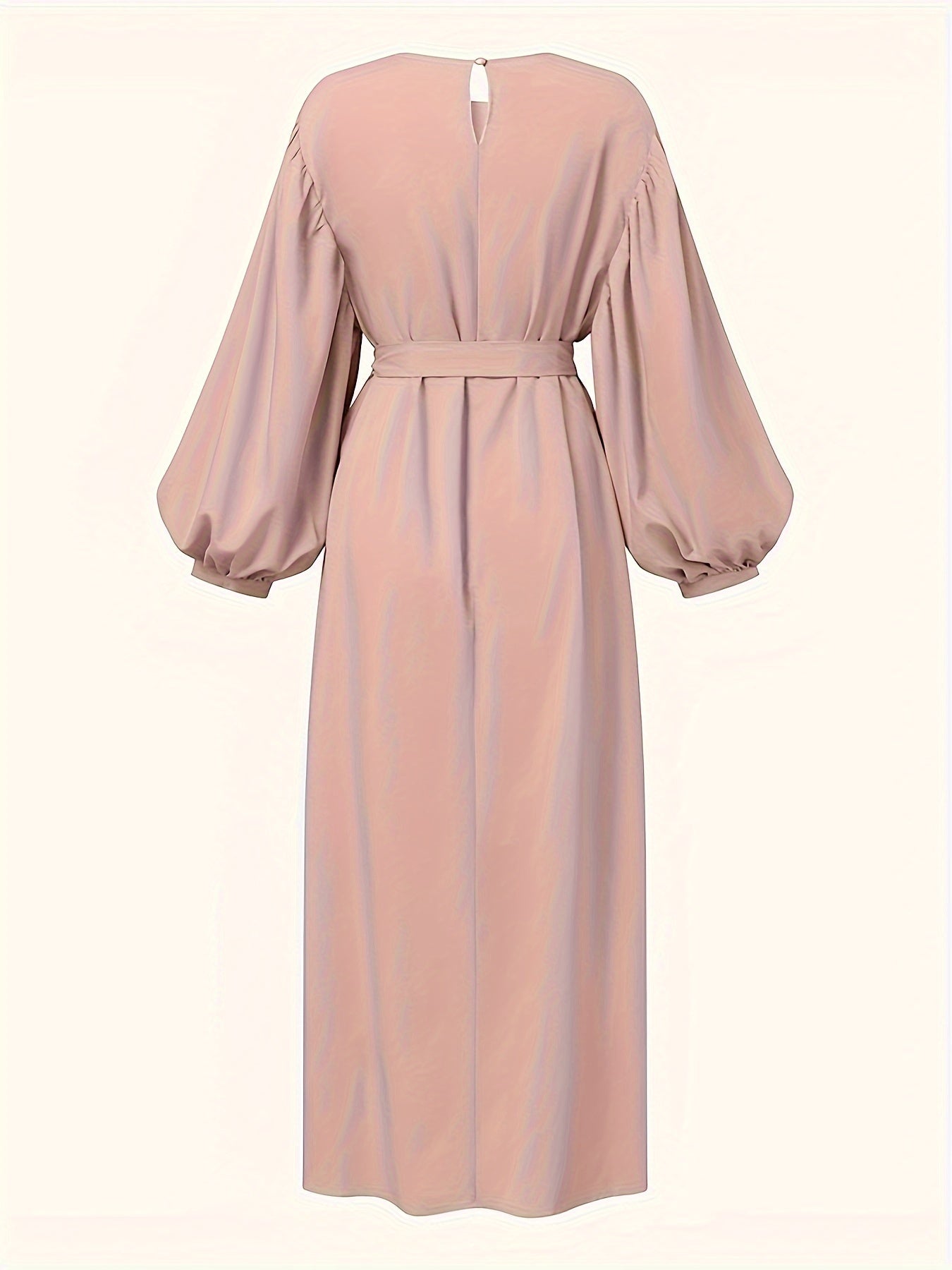 Maxi Abaya Dress with Solid Color Tie Waist Lantern Sleeves for Women