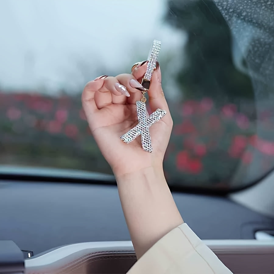 Resin Letter M Keychain Rhinestone Decor Gift Accessory for Birthdays and Christmas