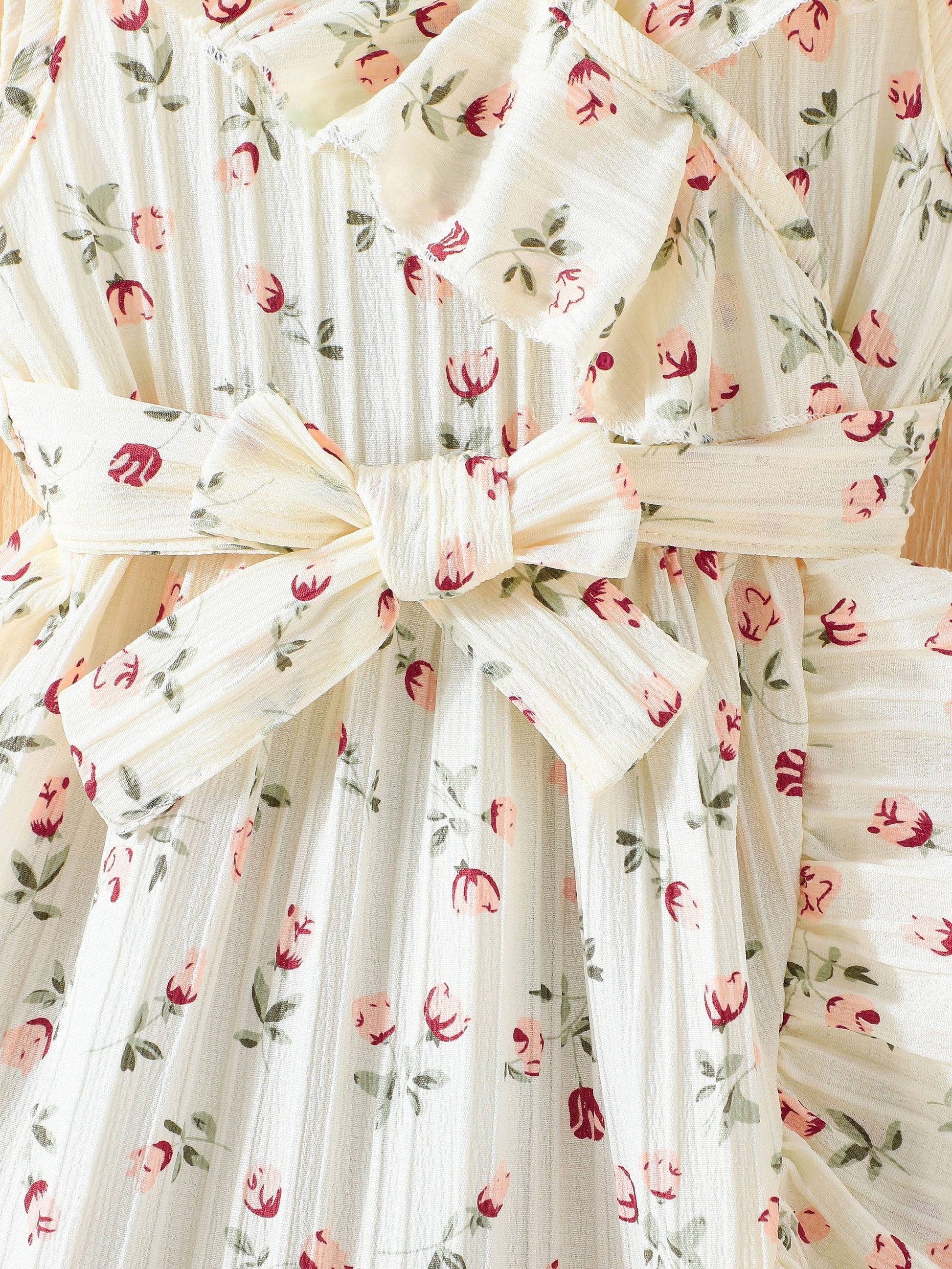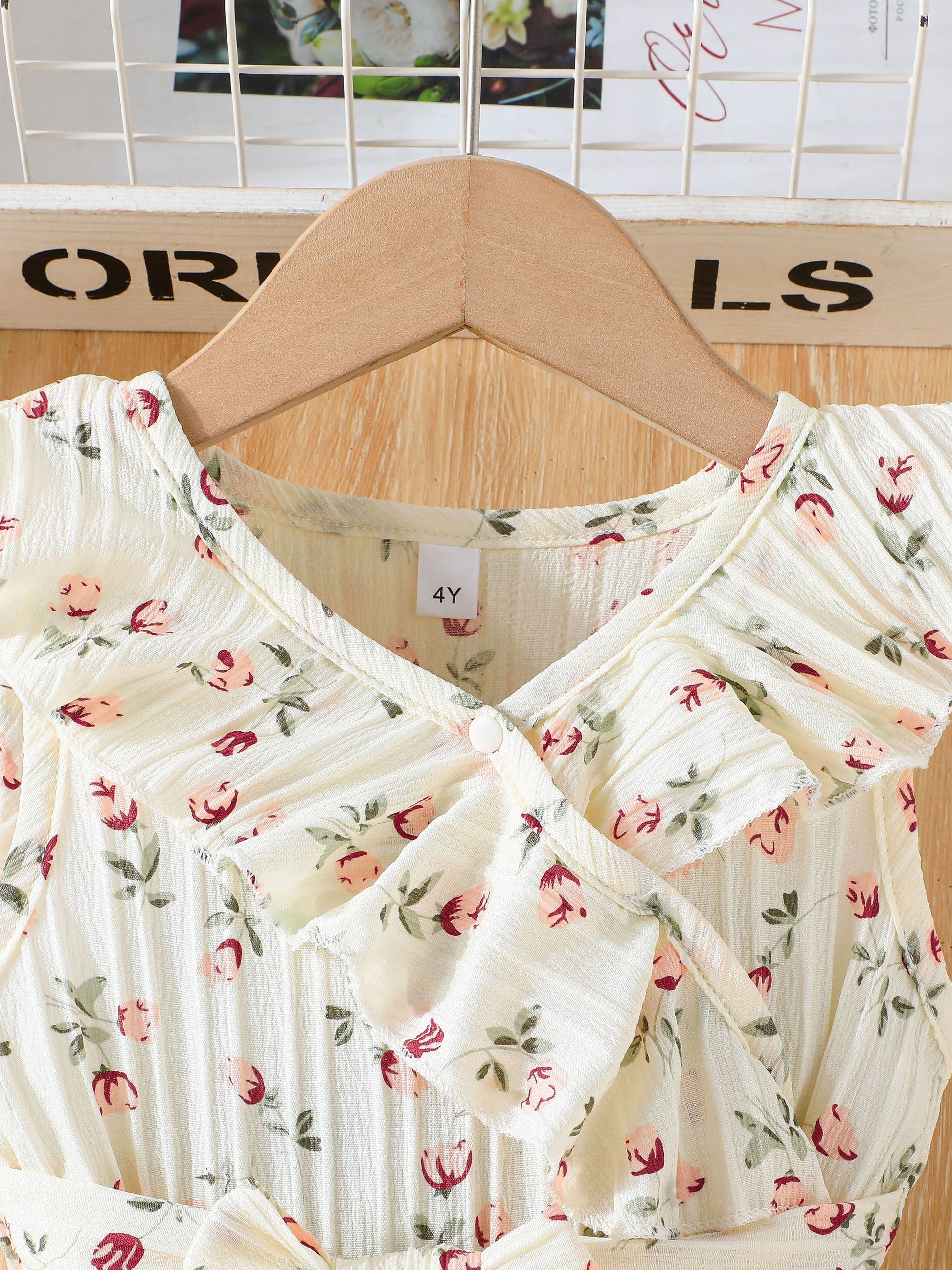 Girls' Summer Floral Sleeveless Dress with Belt for Parties and Beach Outings
