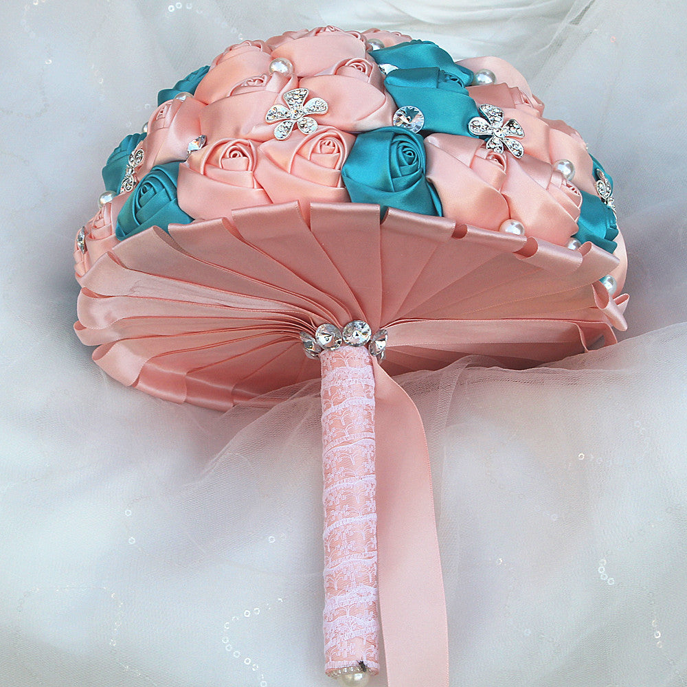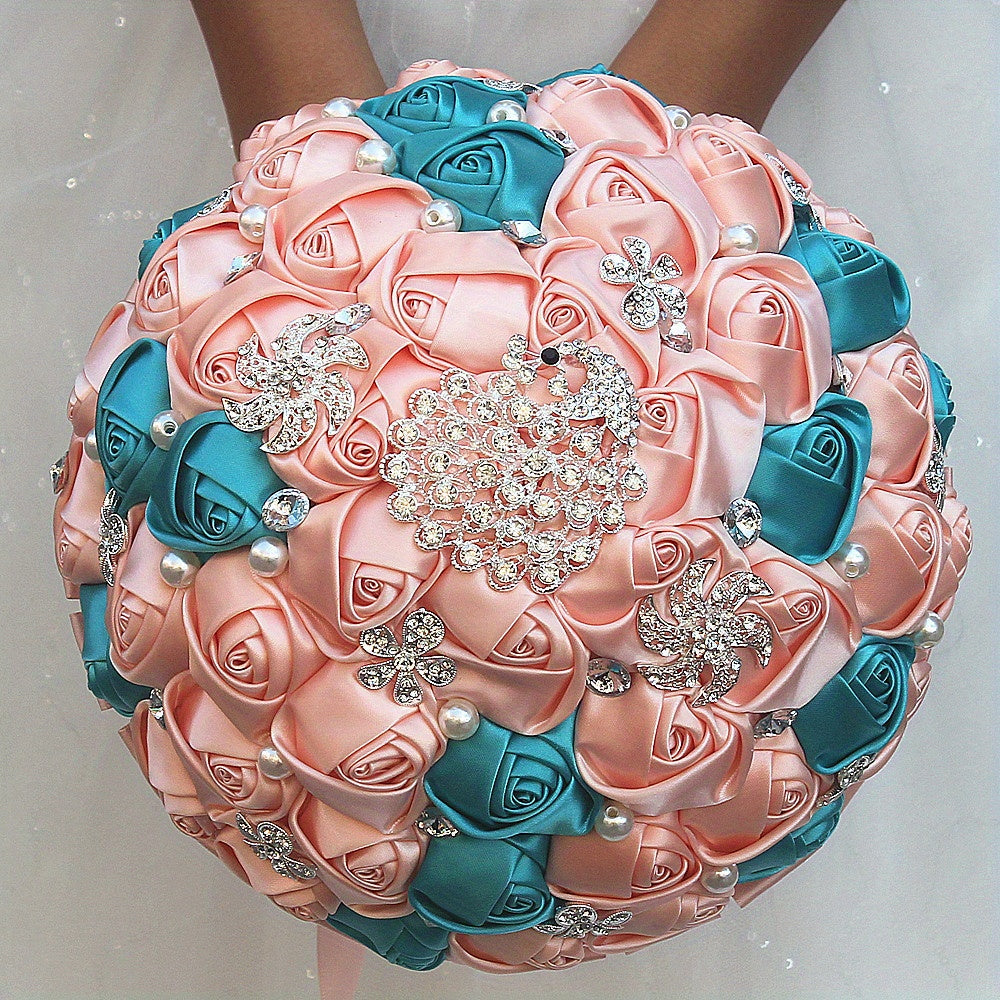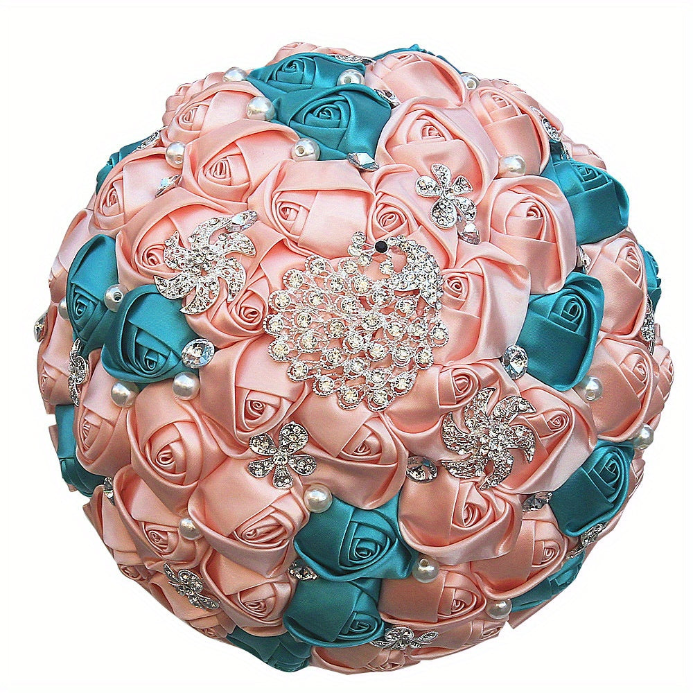 Elegant Bridal Bouquet Peackock Rhinestones Handcrafted Polyester Spandex Wedding Accessory