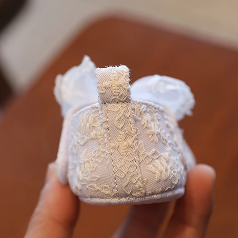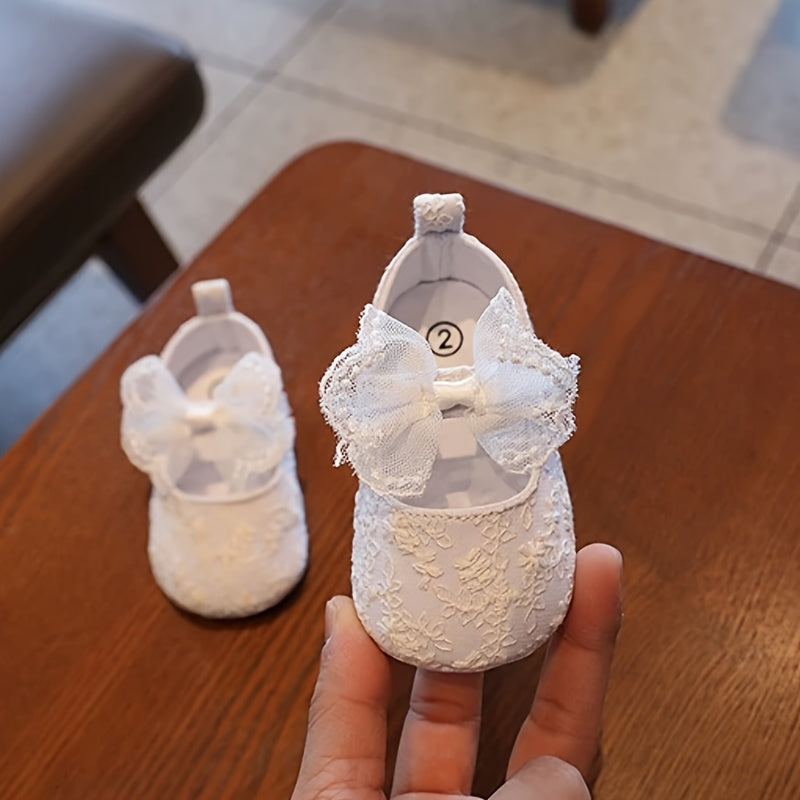 Girls Embroidered Mary Jane Shoes with Bow, Buckle Closure, All-Season Fabric Sole