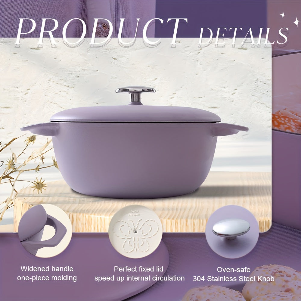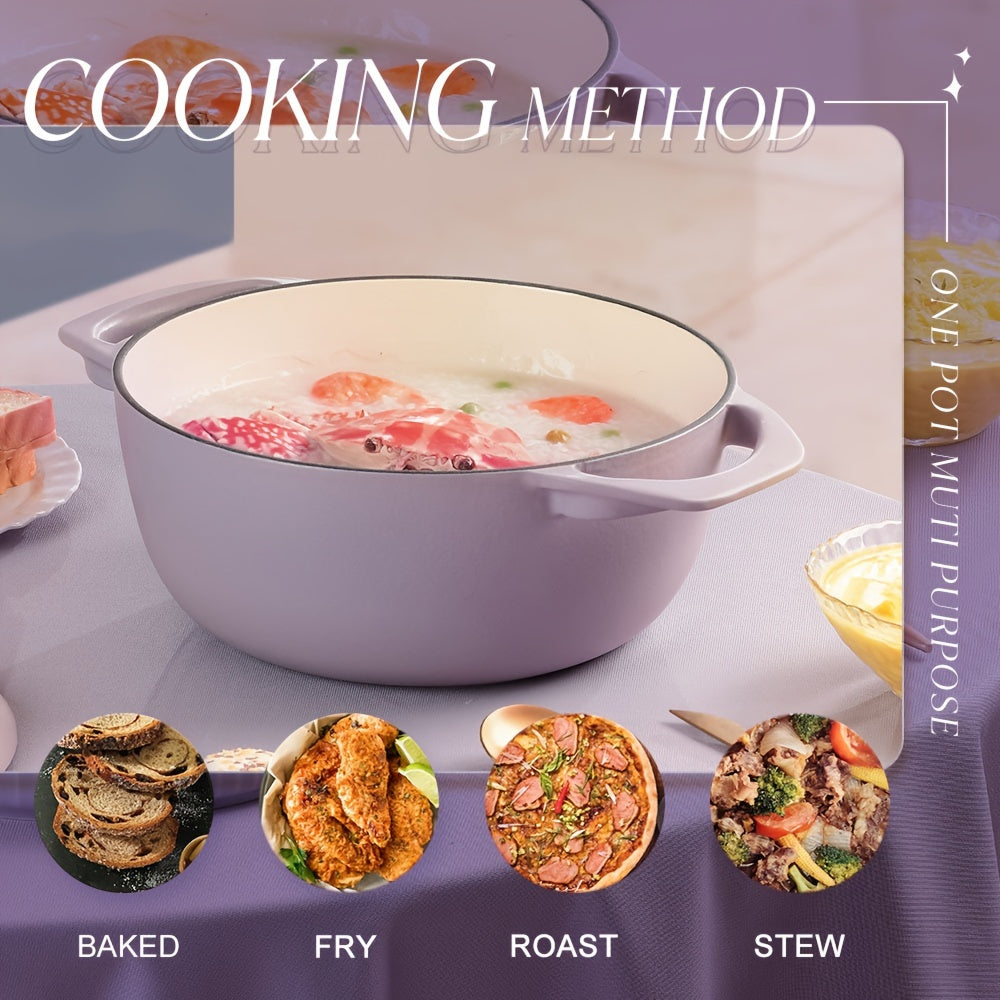Enamel Cast Iron Dutch Oven with Dual Handles, Non-Stick Coating, 4 Qt