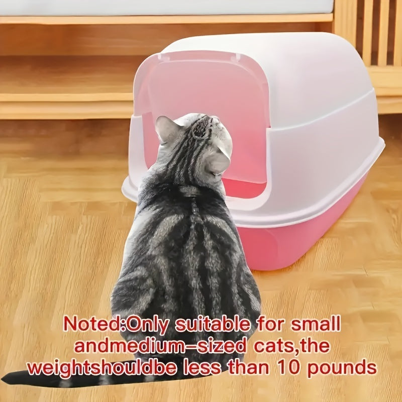 Enclosed Cat Litter Box with Scoop Leak-Proof Odor-Control Small to Medium Cats White Gray 45cm
