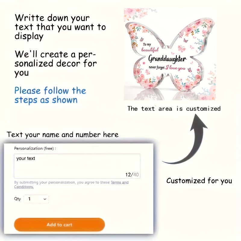 Engraved Granddaughter Memorial Plaque Acrylic Butterfly with Frame and Desk Decor