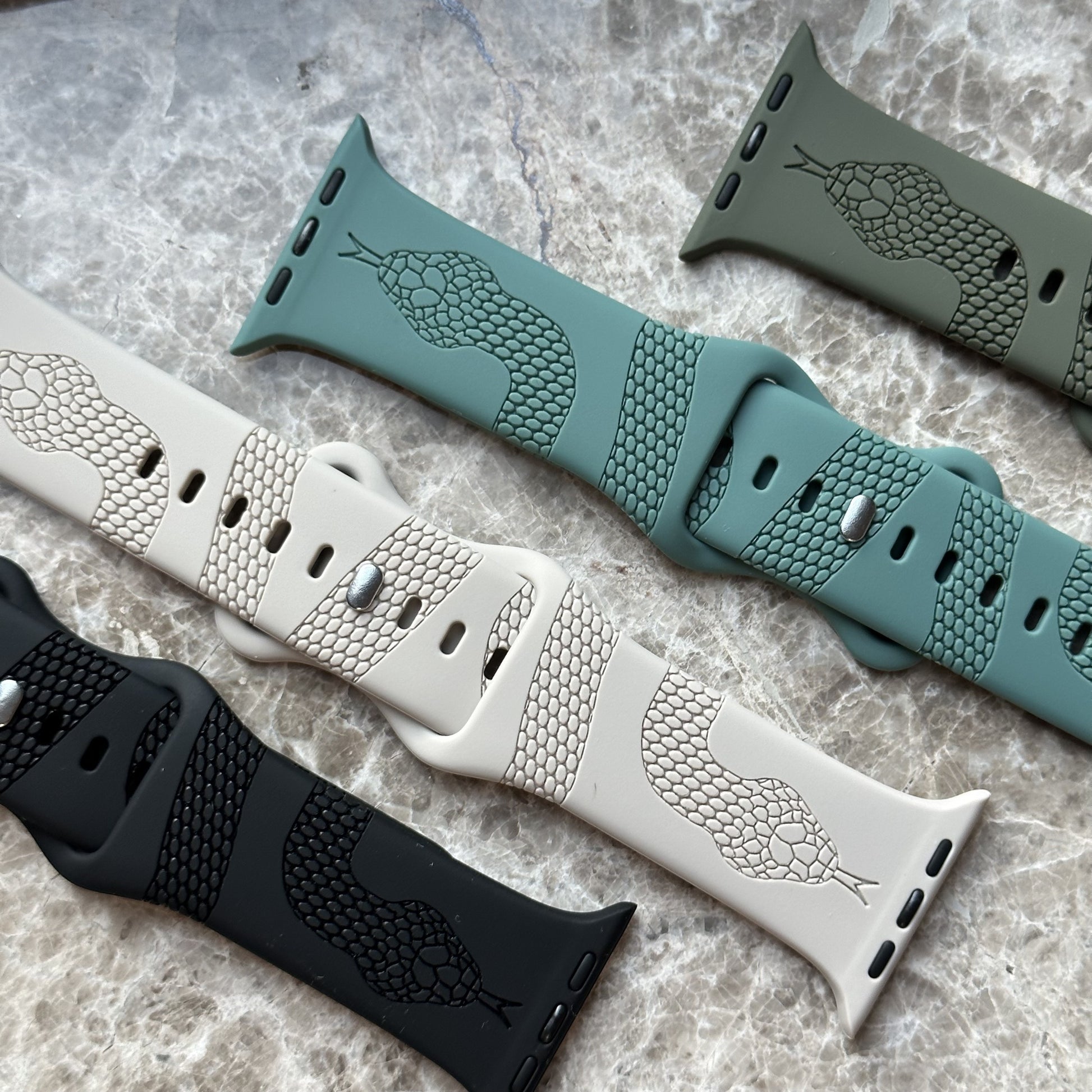 Engraved Snake Silicone Watch Band for Apple Watch All Series Durable Comfortable Strap