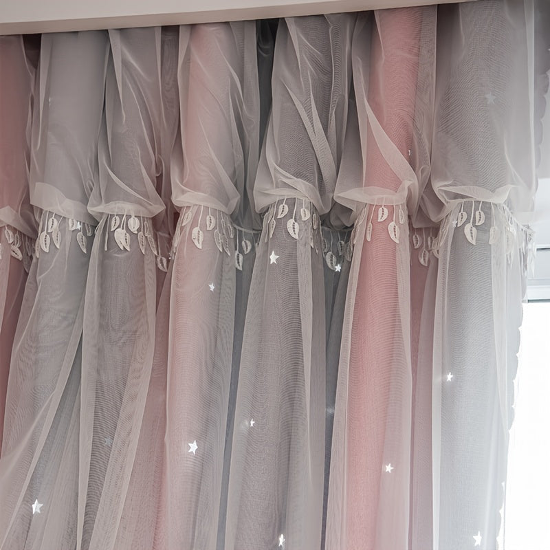 Blackout Curtains with Lace Sheer Tieback for Living Room and Bedroom Double-Layer Light Blocking