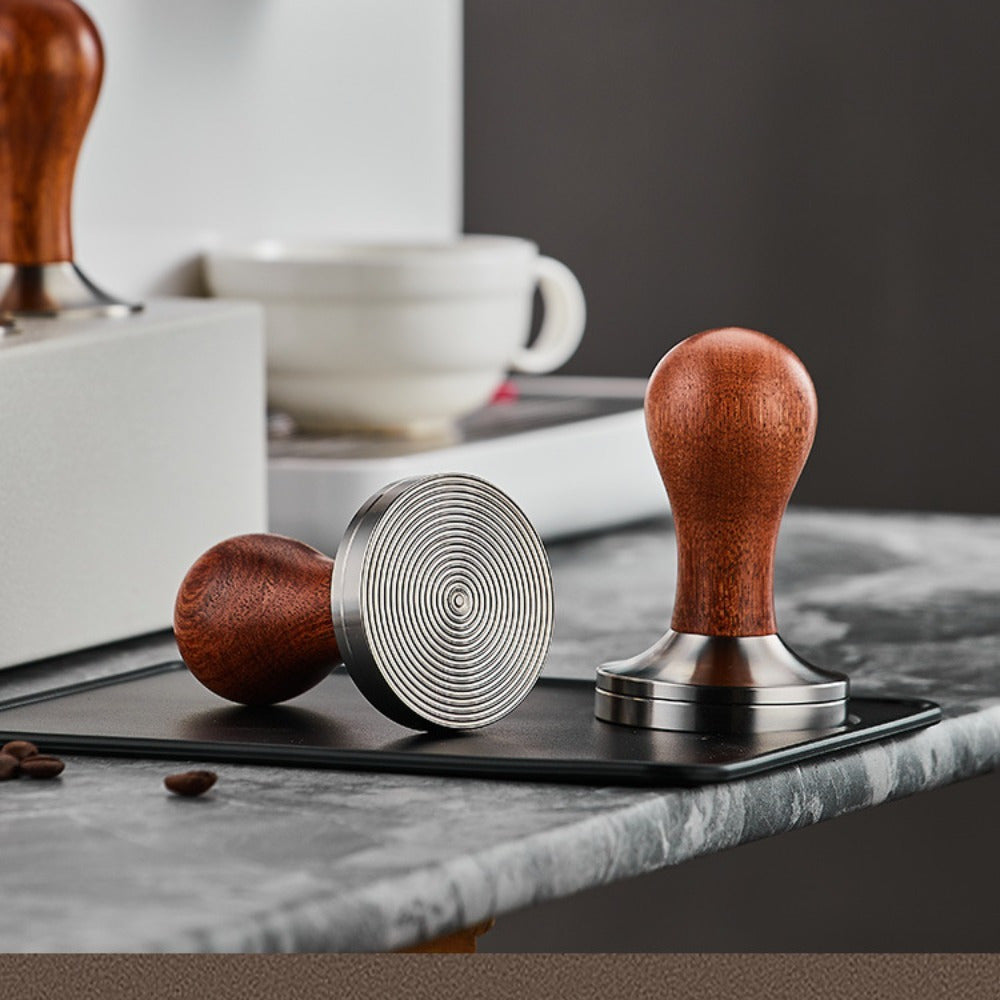Espresso Tamper Calibrated Stainless Steel Walnut Handle 51/53/58mm