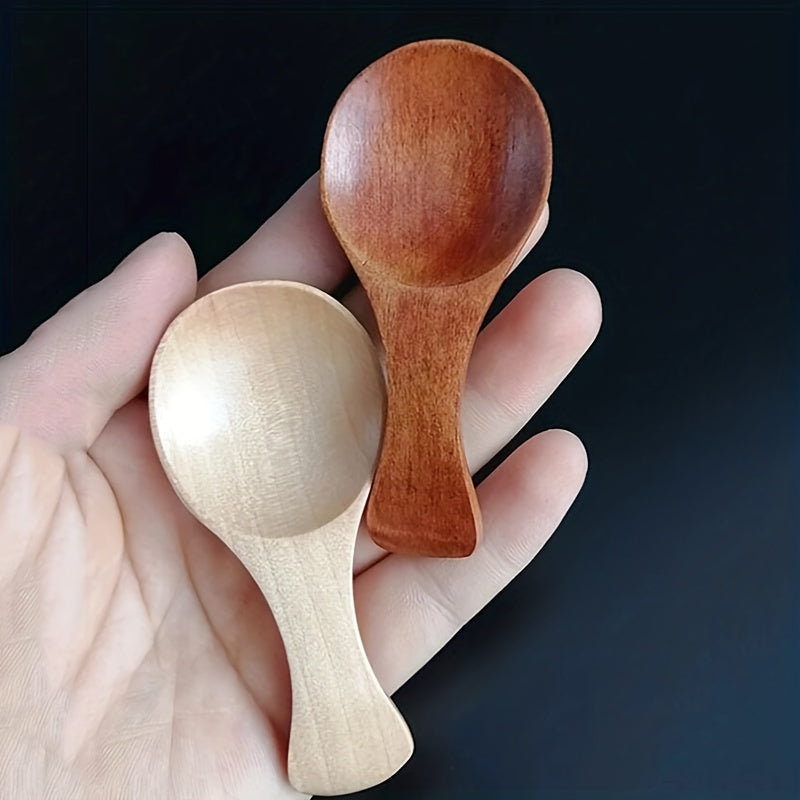 Mini Wooden Spoon for Ice Cream Tea Coffee - Wide-Mouth Short Handle Seasonings Sugar Salt