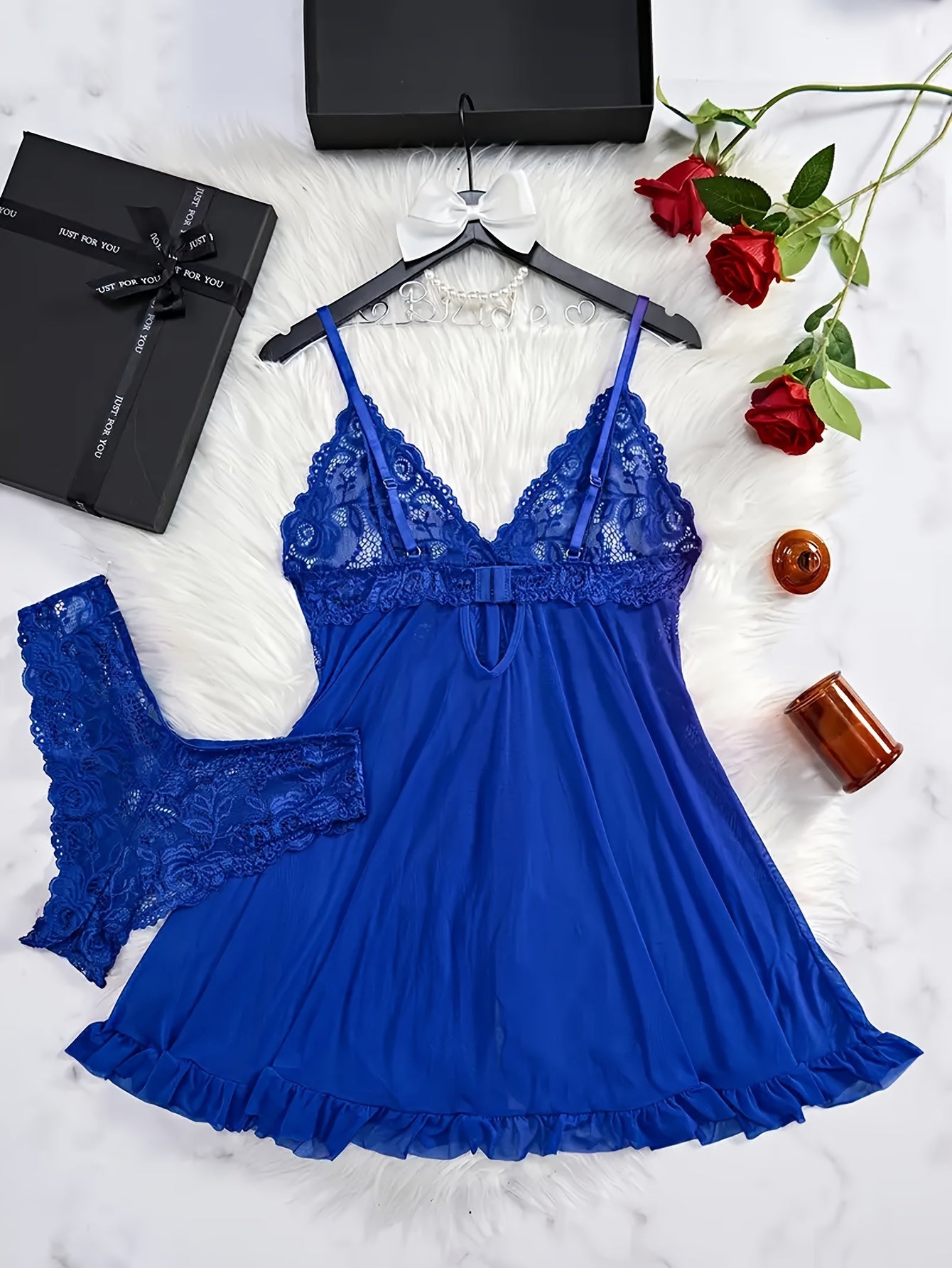 Women's Lace Pajama Set with Backless Dress and Thong Sleepwear