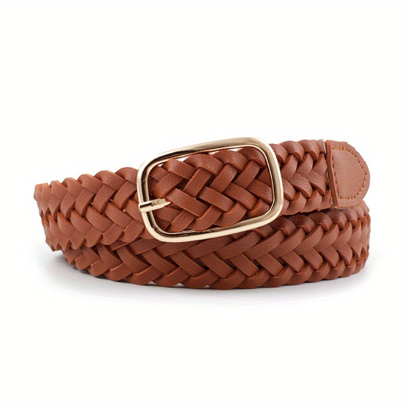 Women’s Woven Leather Belt Square Buckle for Coats and Jeans