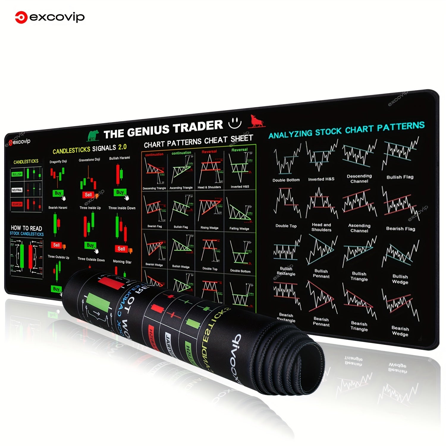 Large Rubber Mouse Pad with Stock Trading Cheat Sheet Non-Slip Washable Desk Mat