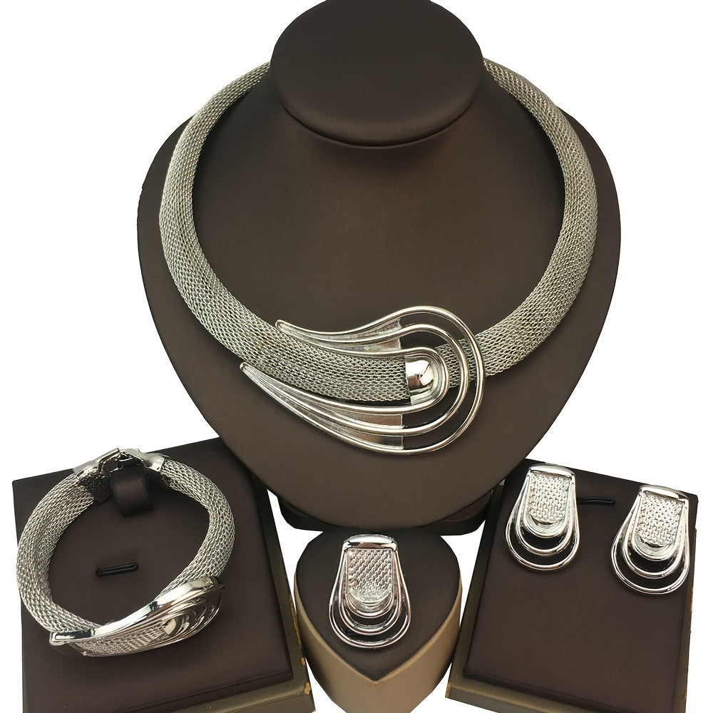 Gold Plated Jewelry Set with Earrings Necklace Bracelet Ring for Parties