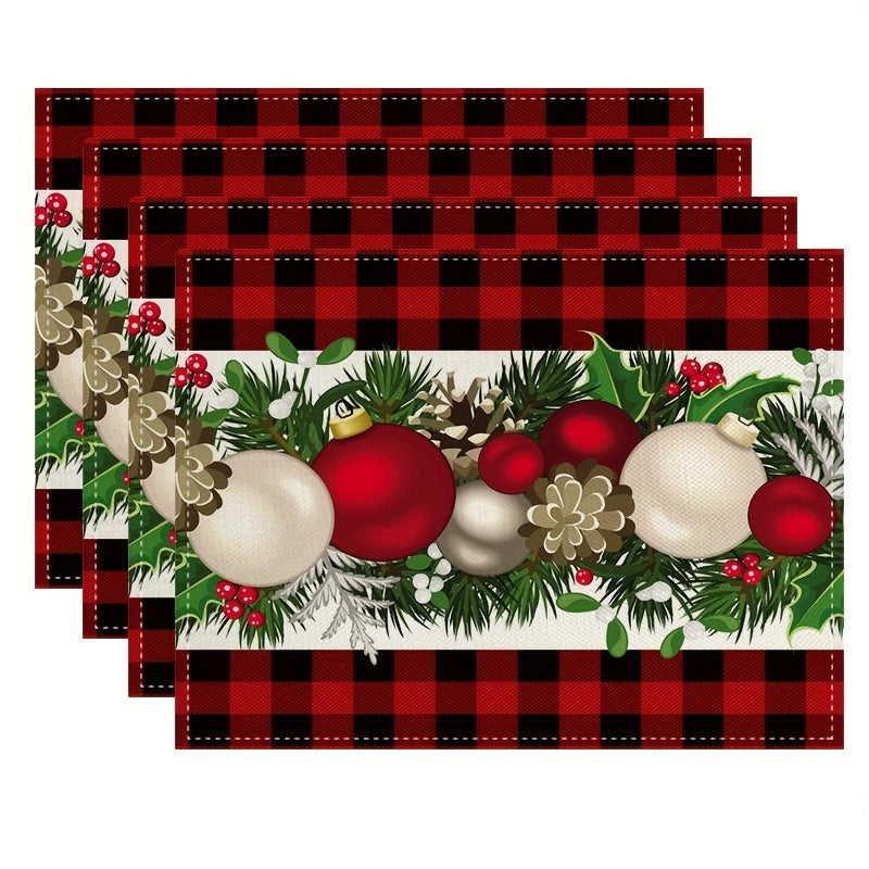 Christmas Placemats Set of 4 Red and Black Buffalo Check Plaid 30.48x45.72cm