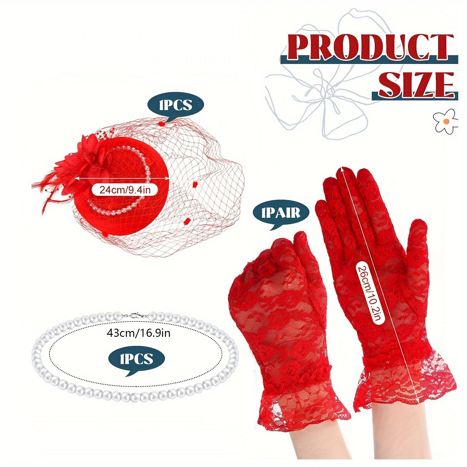 Women's Fascinator Hat Set with Veil Feather and Pearl Necklace