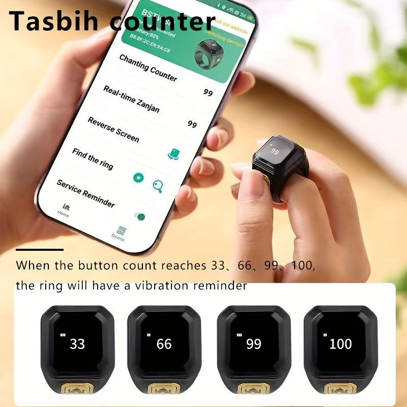 Fashionable Smart Prayer Watch Ring with Prayer Counter Reminders OLED Screen Black