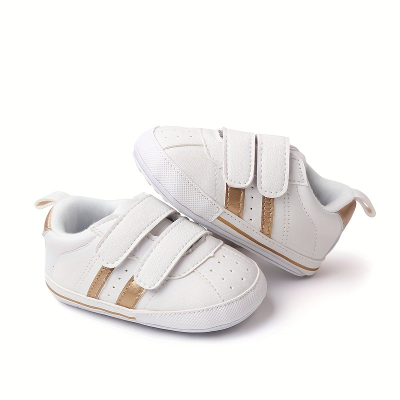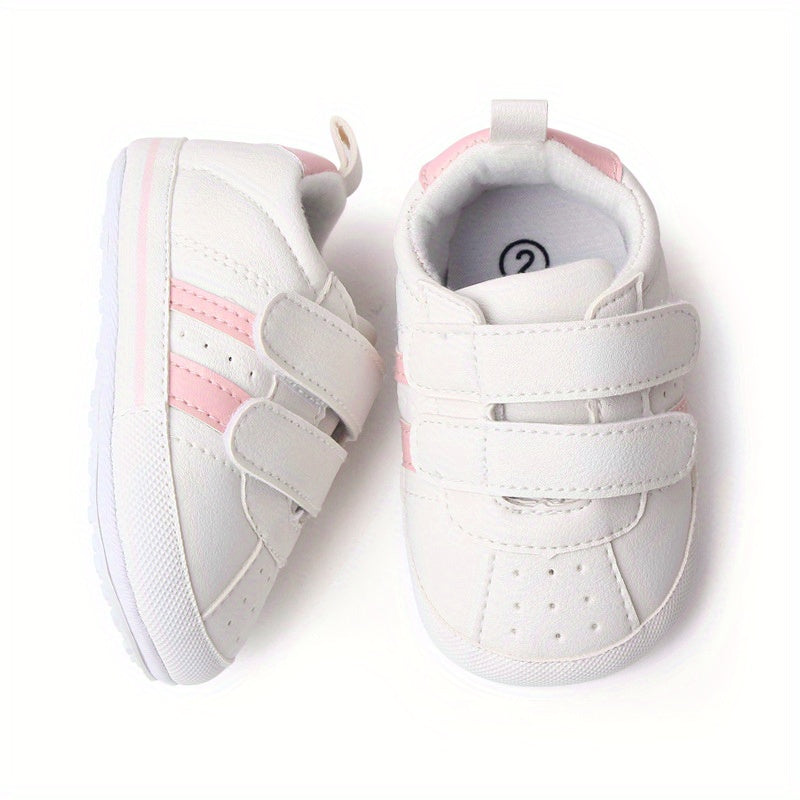 Baby Girls Striped First Walkers Sneakers Low Top Microfiber Leather Rubber Sole All-Season