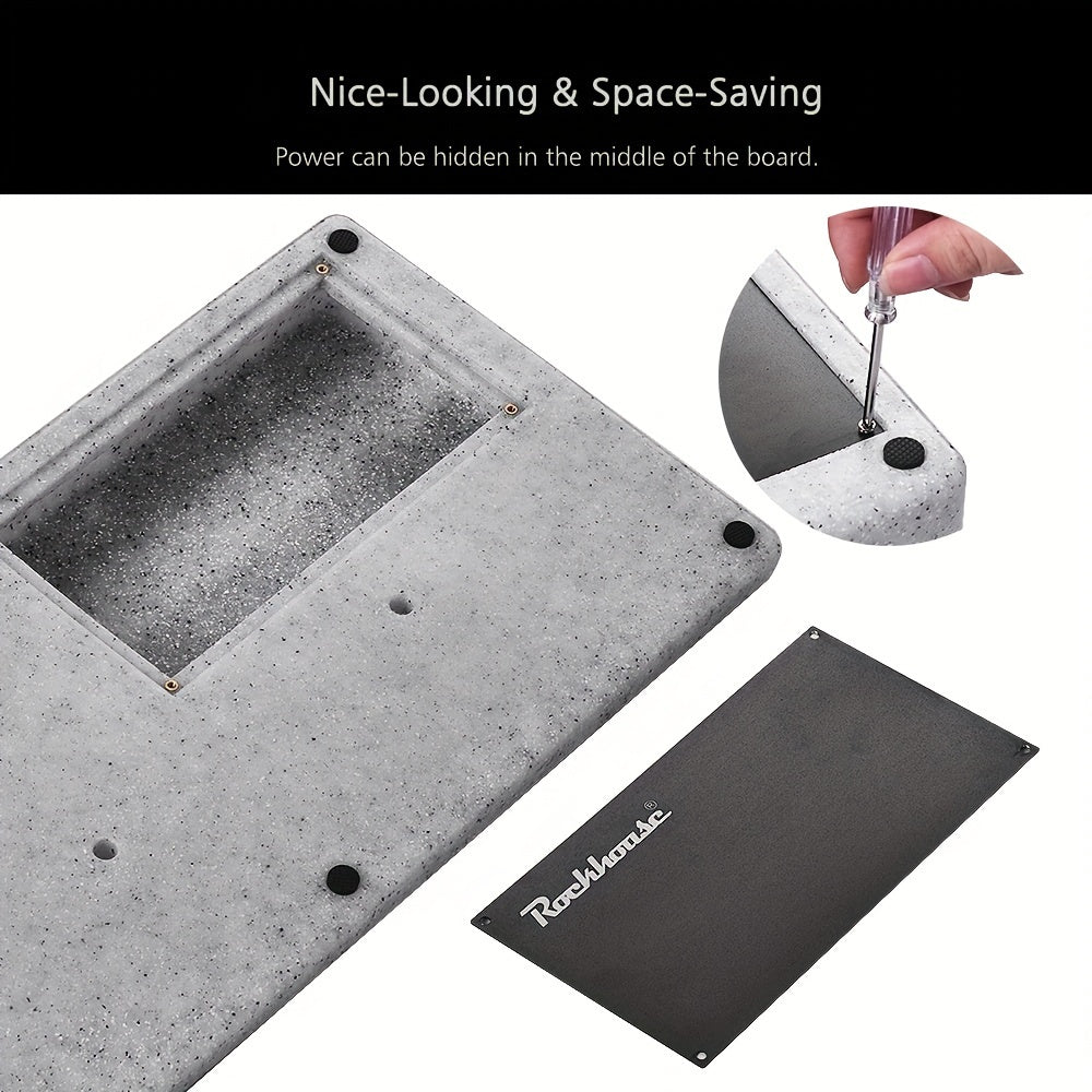 Lightweight Black Guitar Pedal Board with Non-Slip Surface and Hidden Power Supply