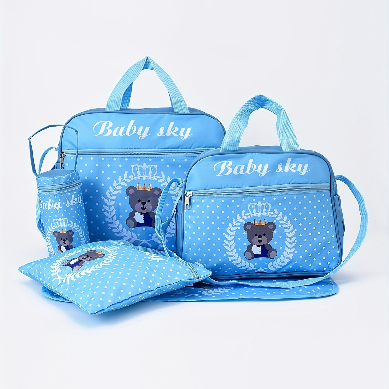 Five-Piece Bear-Printed Diaper Bag Set Large Capacity Multifunctional Mommy Bag