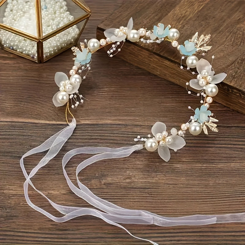 Women's Floral Headband with Rhinestones and Pearls for Weddings and Prom Dresses