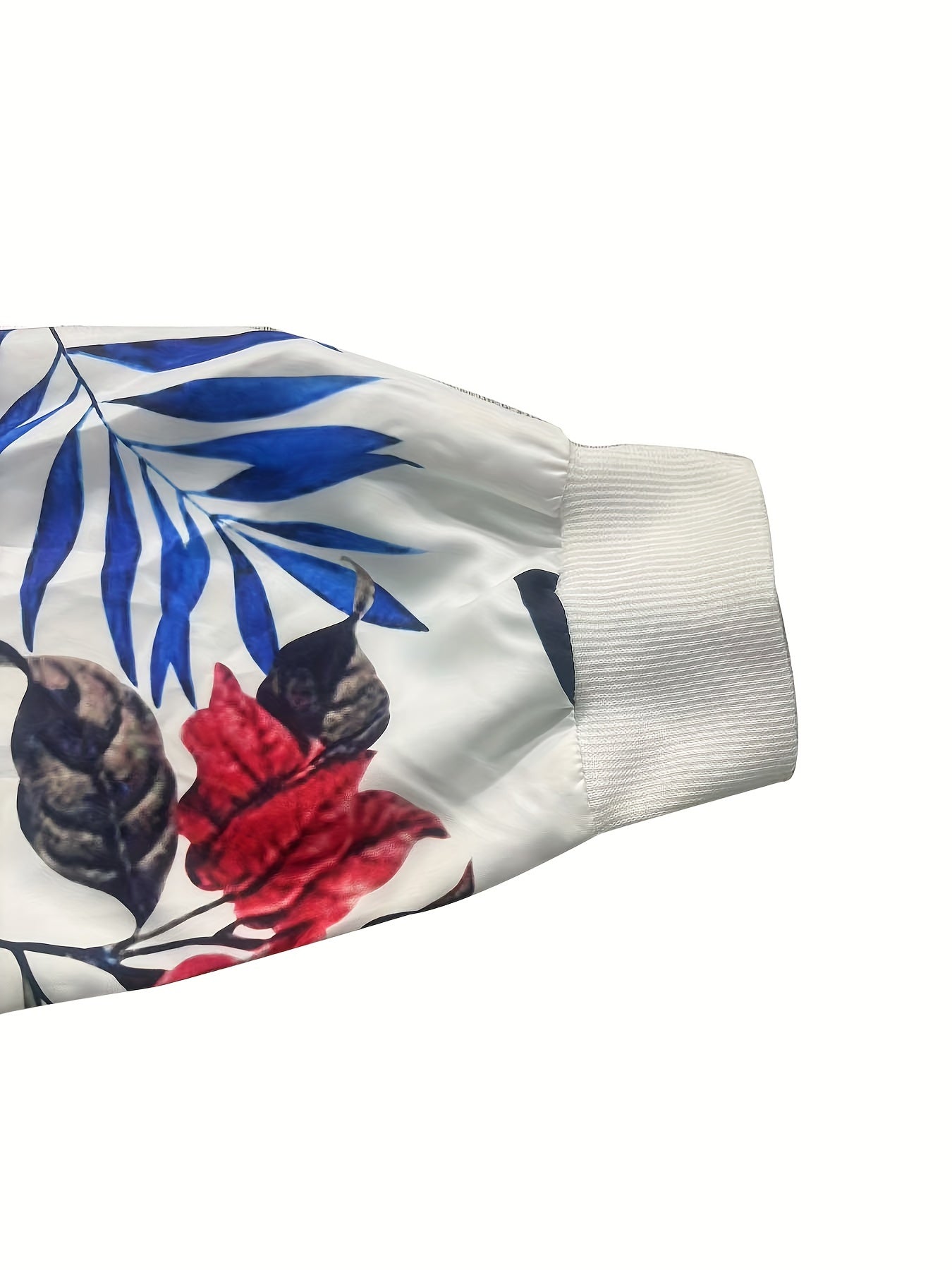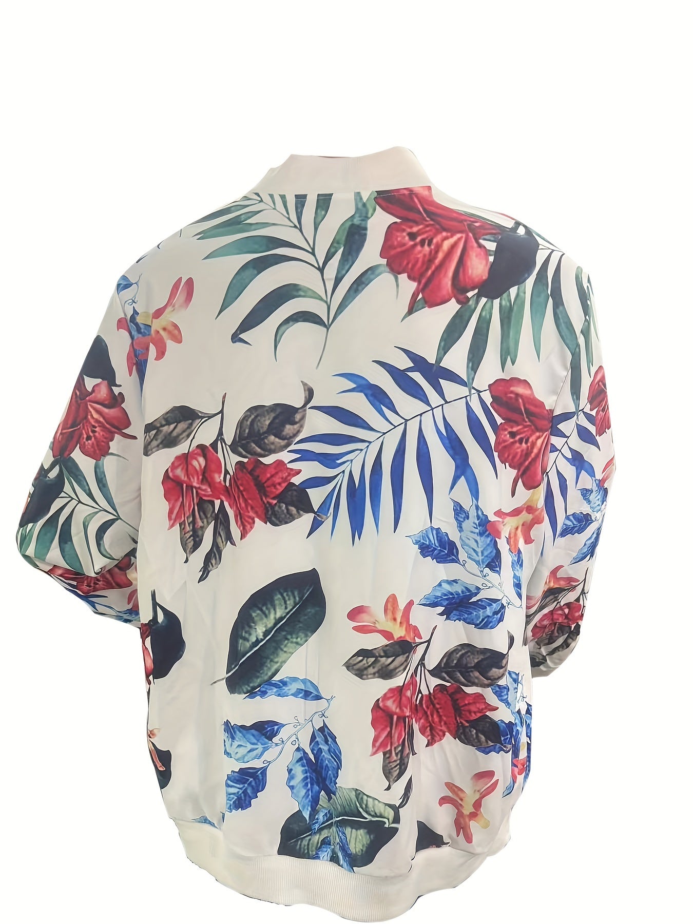 Plus Size Floral Zipper Jacket for Women Fall Winter Casual Long Sleeve