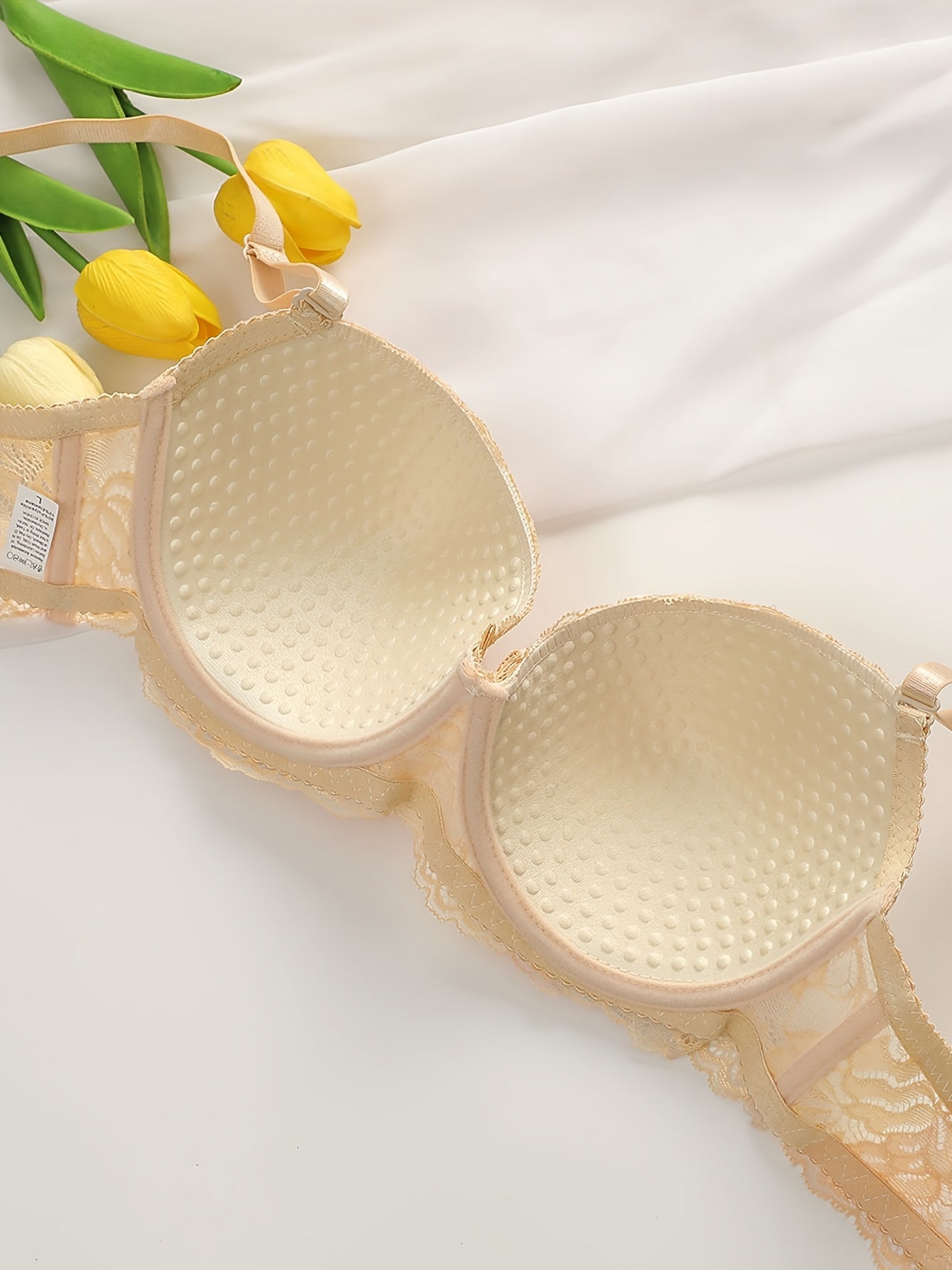 Women's Floral Lace Lingerie Set with Push-Up Bra and See-Through Briefs