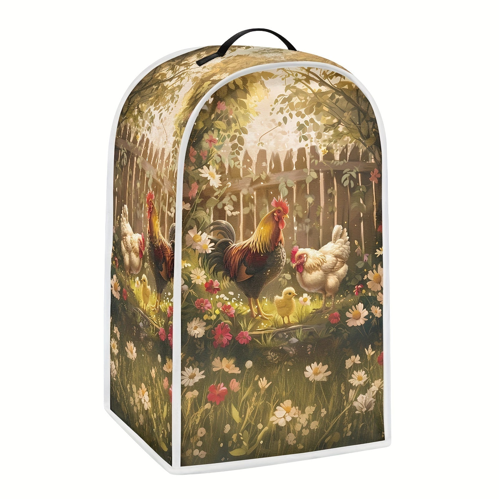 Foldable Kitchen Appliance Cover with Top Handle Daisy Rooster Pattern Small Food Processor Protector