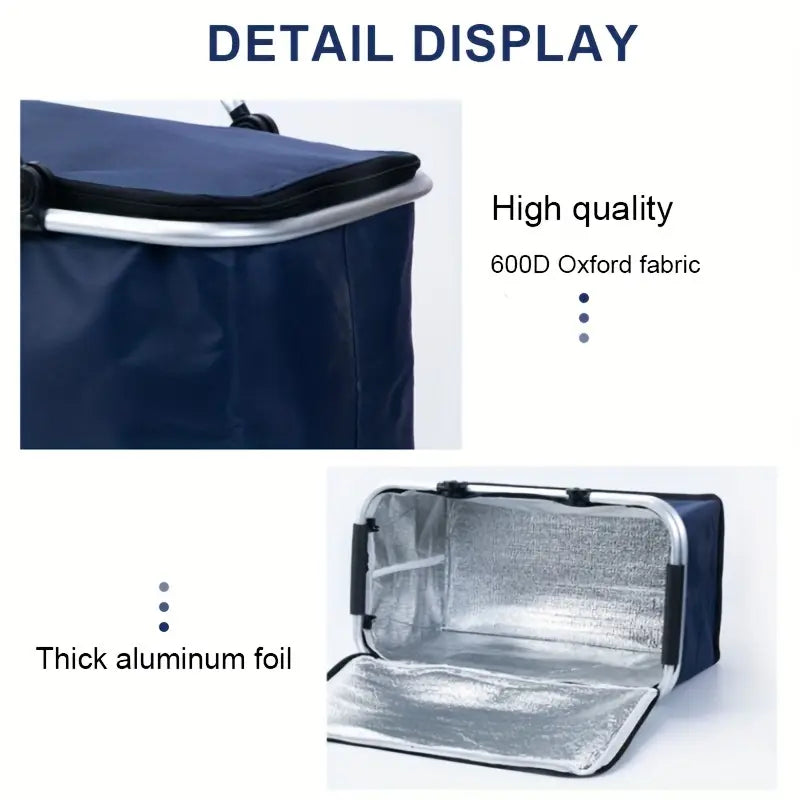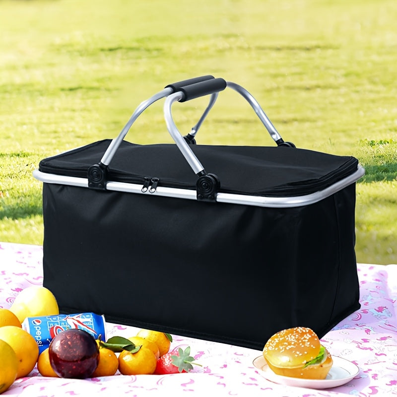 Foldable Insulated Picnic Bag with Handle for Outdoor Travel Black Nylon