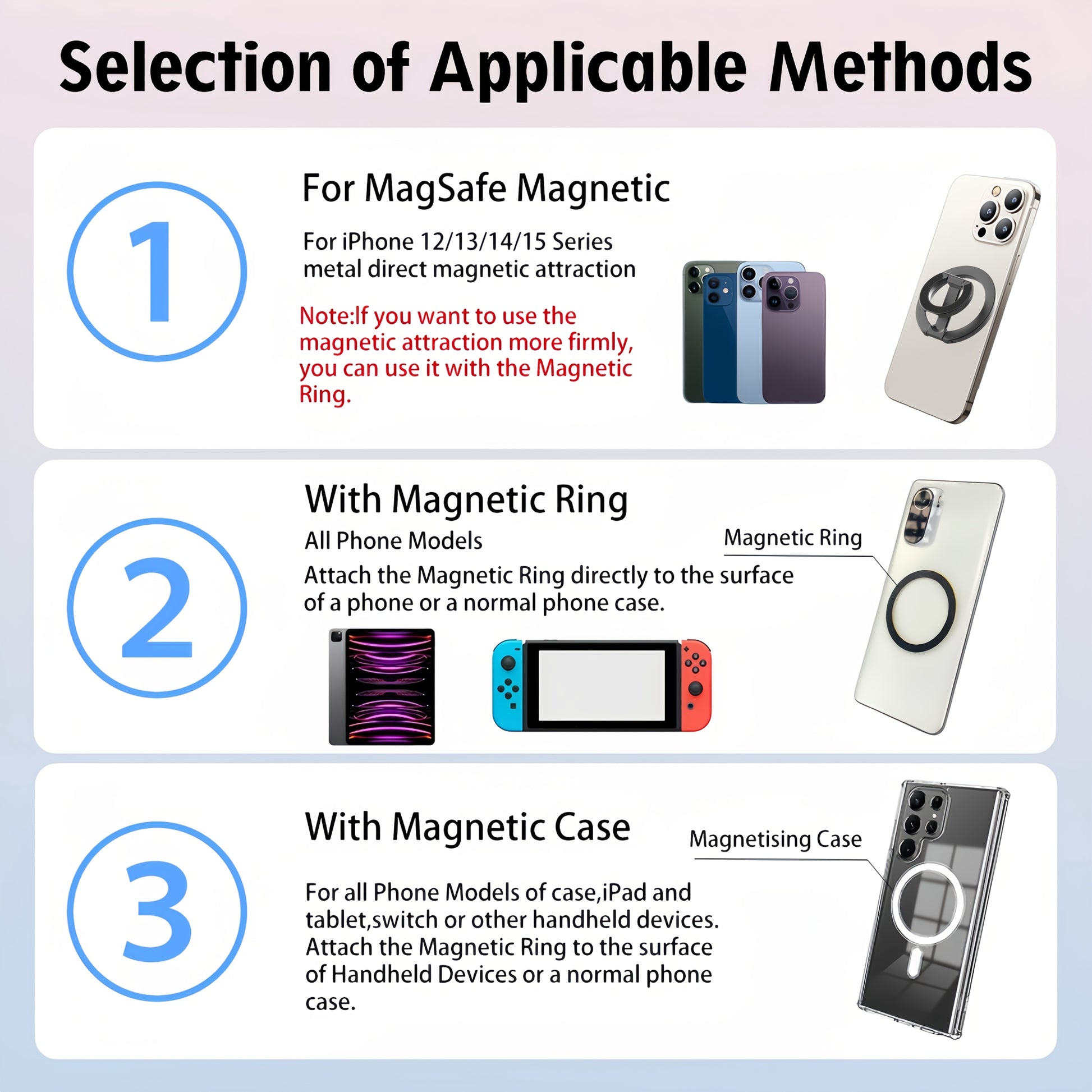 Folding Phone Stand with 360° Rotation and Magnetic Ring Holder for Mobile Support