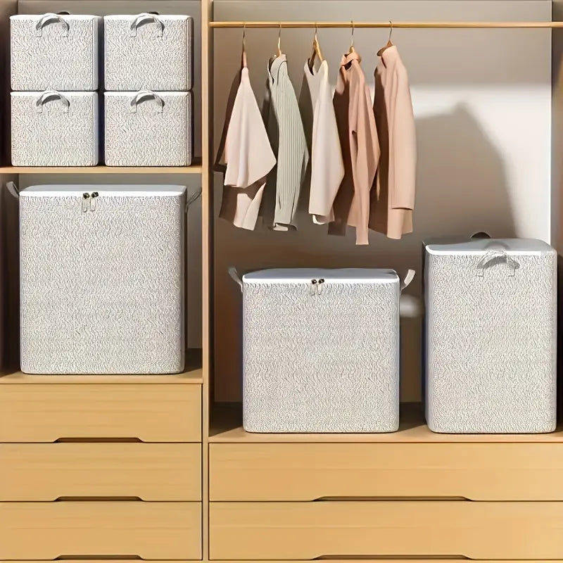 Folding Storage Box with Handle Large Capacity Gray Striped for Toy and Clothing Organization