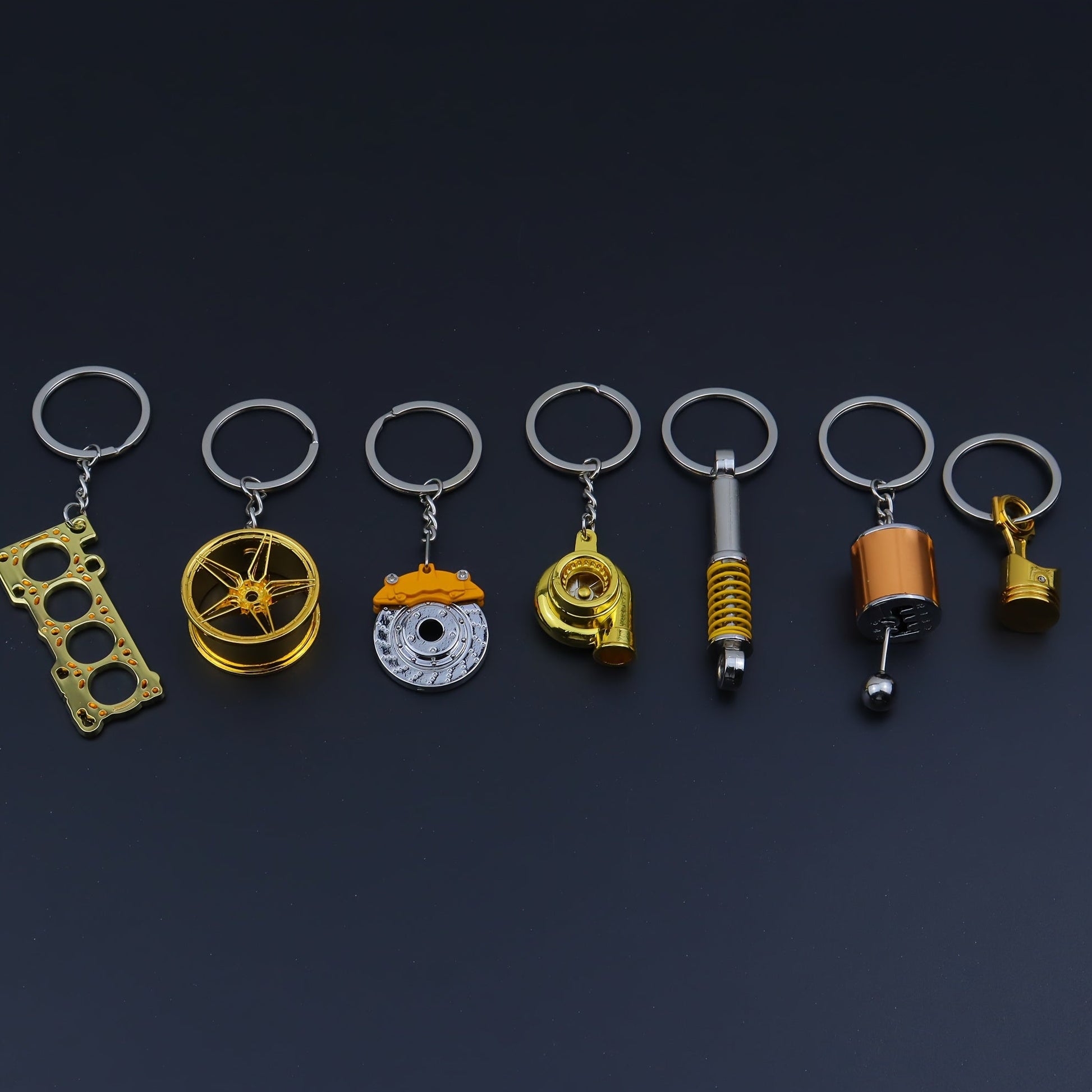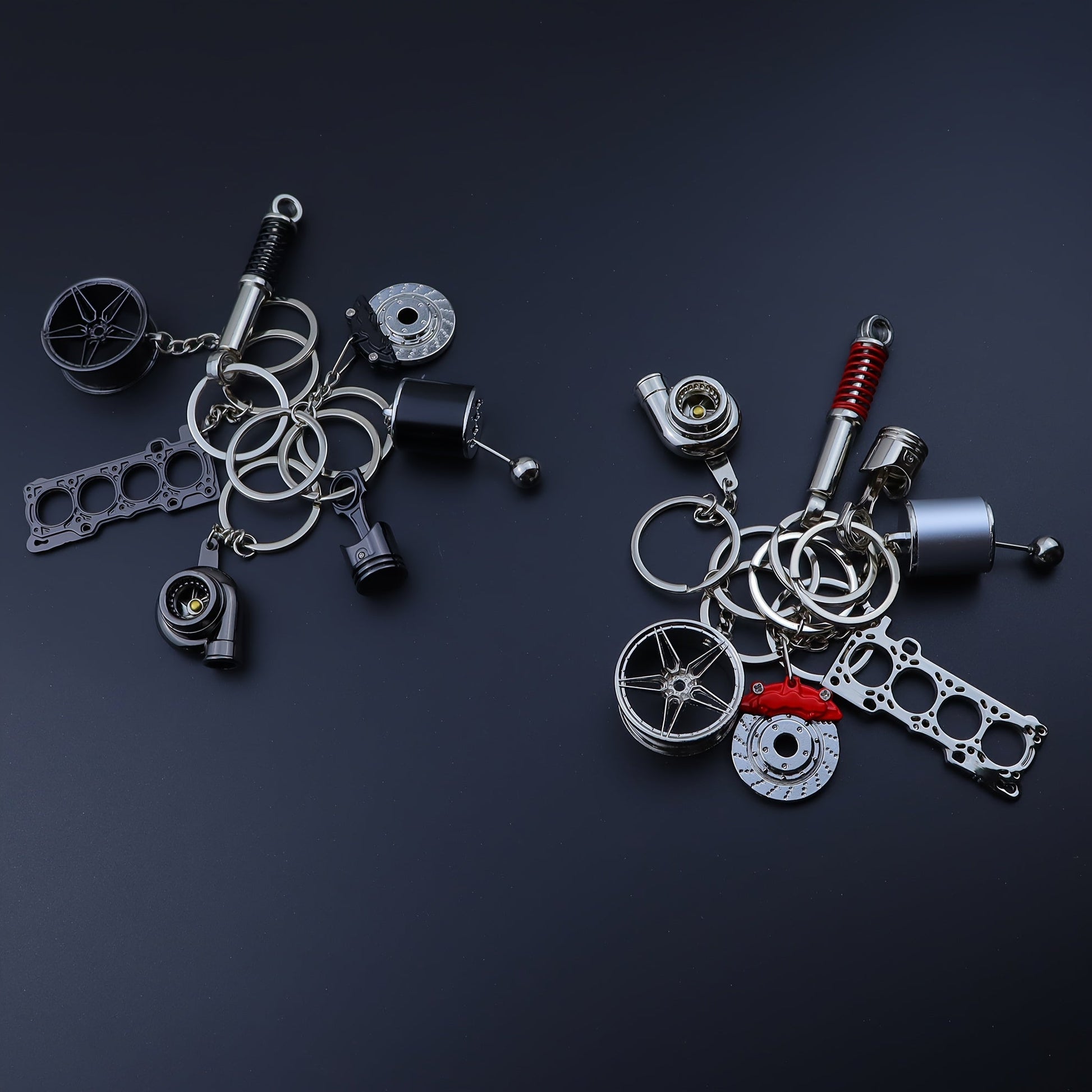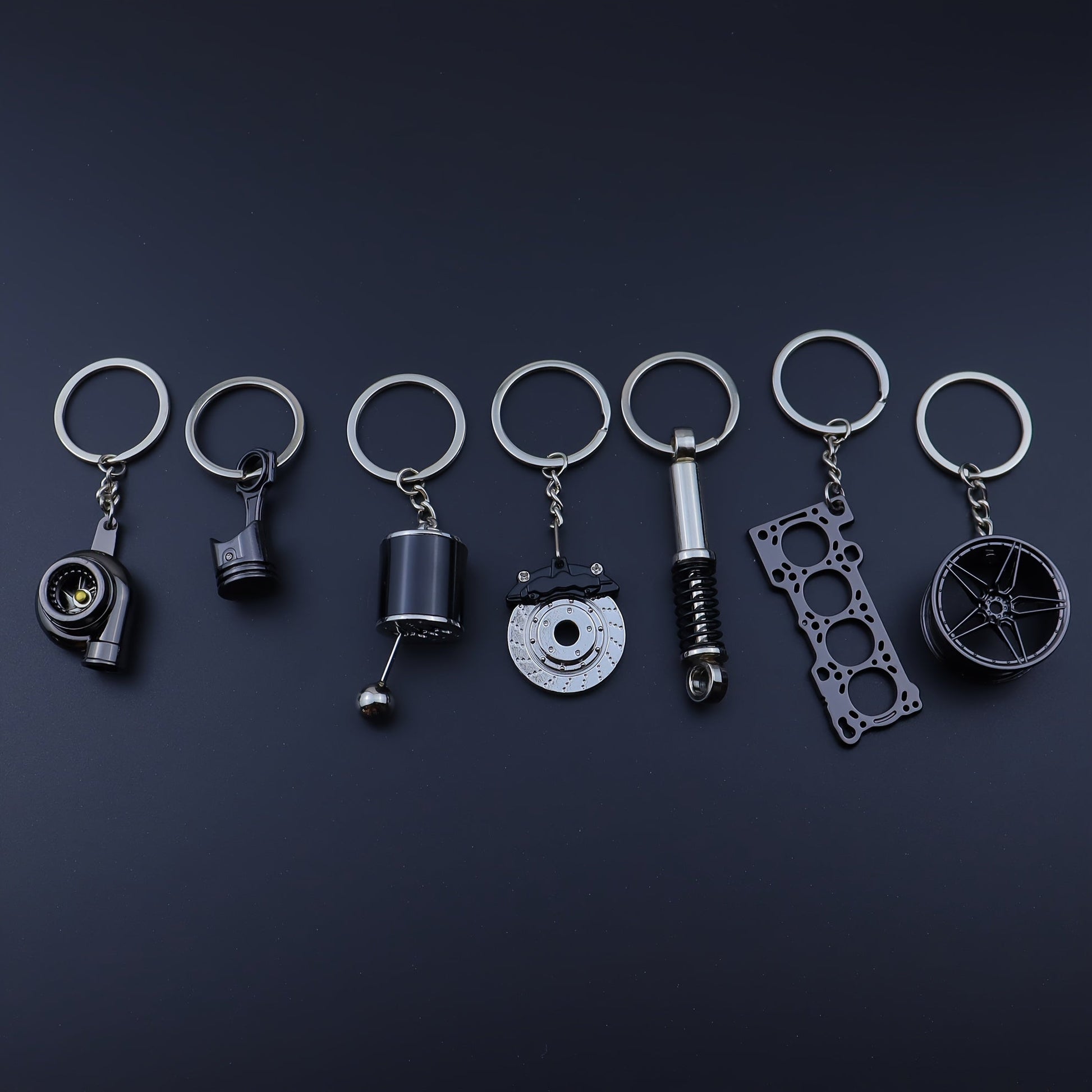 Car Modification Keychains Set Zinc Alloy Black 7-Piece Auto Accessories