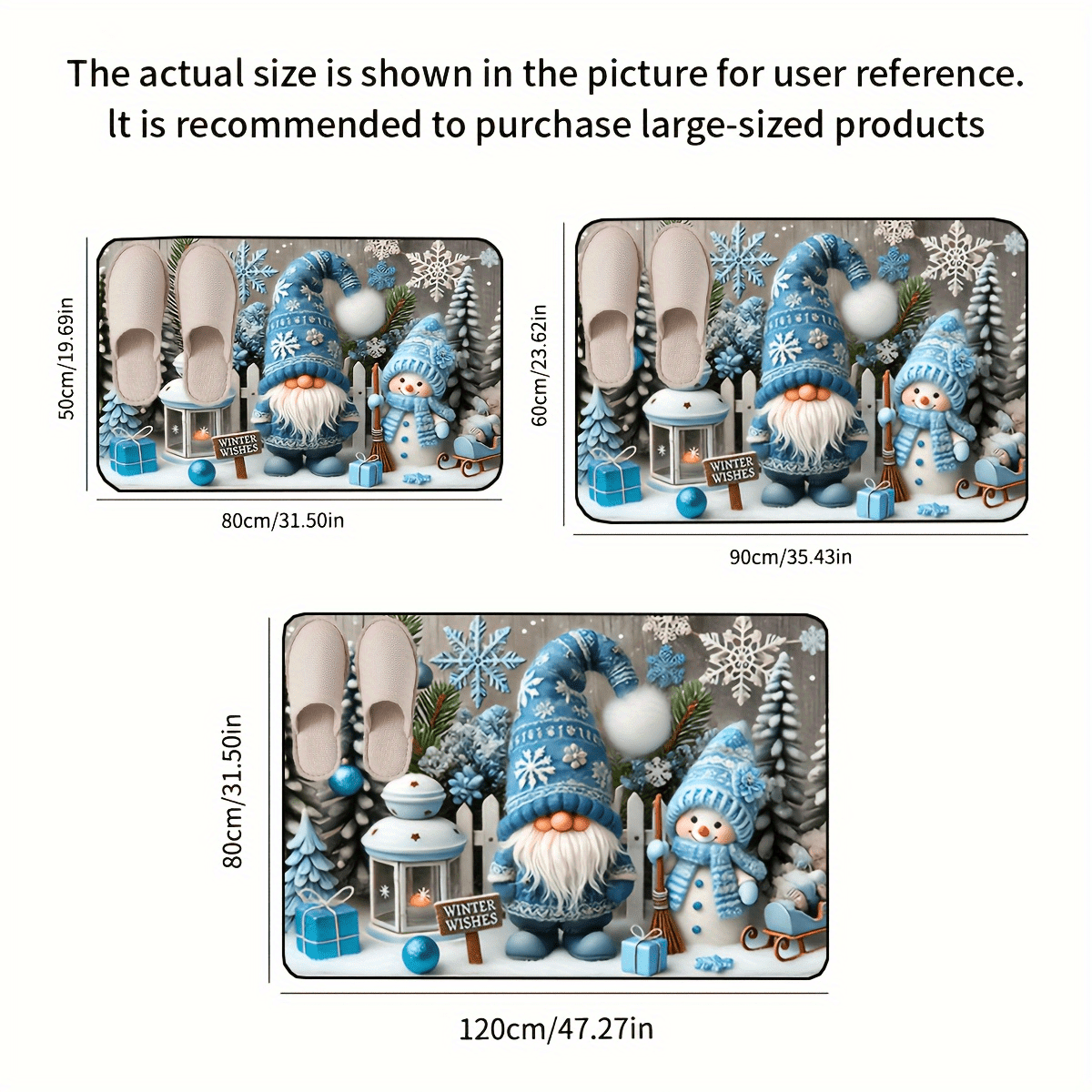 Christmas Gnome Doormat Non-Slip Polyester Low Pile Entrance Rug