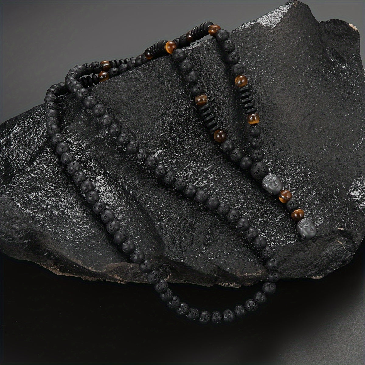 Unisex Natural Stone Bead Necklace with Buddha Head Pendant for Father's Day
