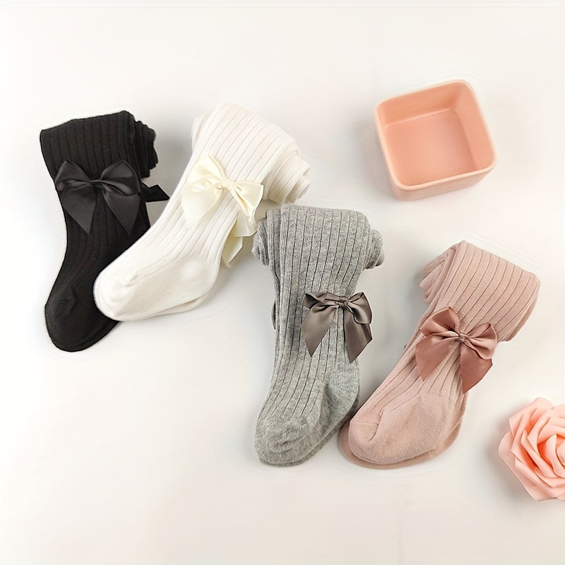 Girls' Knit Pantyhose with Bowknot Solid Color Spring Fall Fashionable Layering