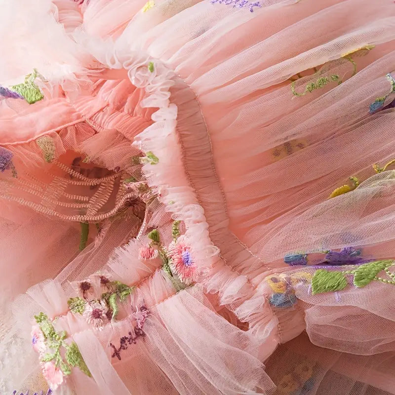 Girls Butterfly Princess Dress with Wings Floral Mesh for Girls Summer Holiday Party