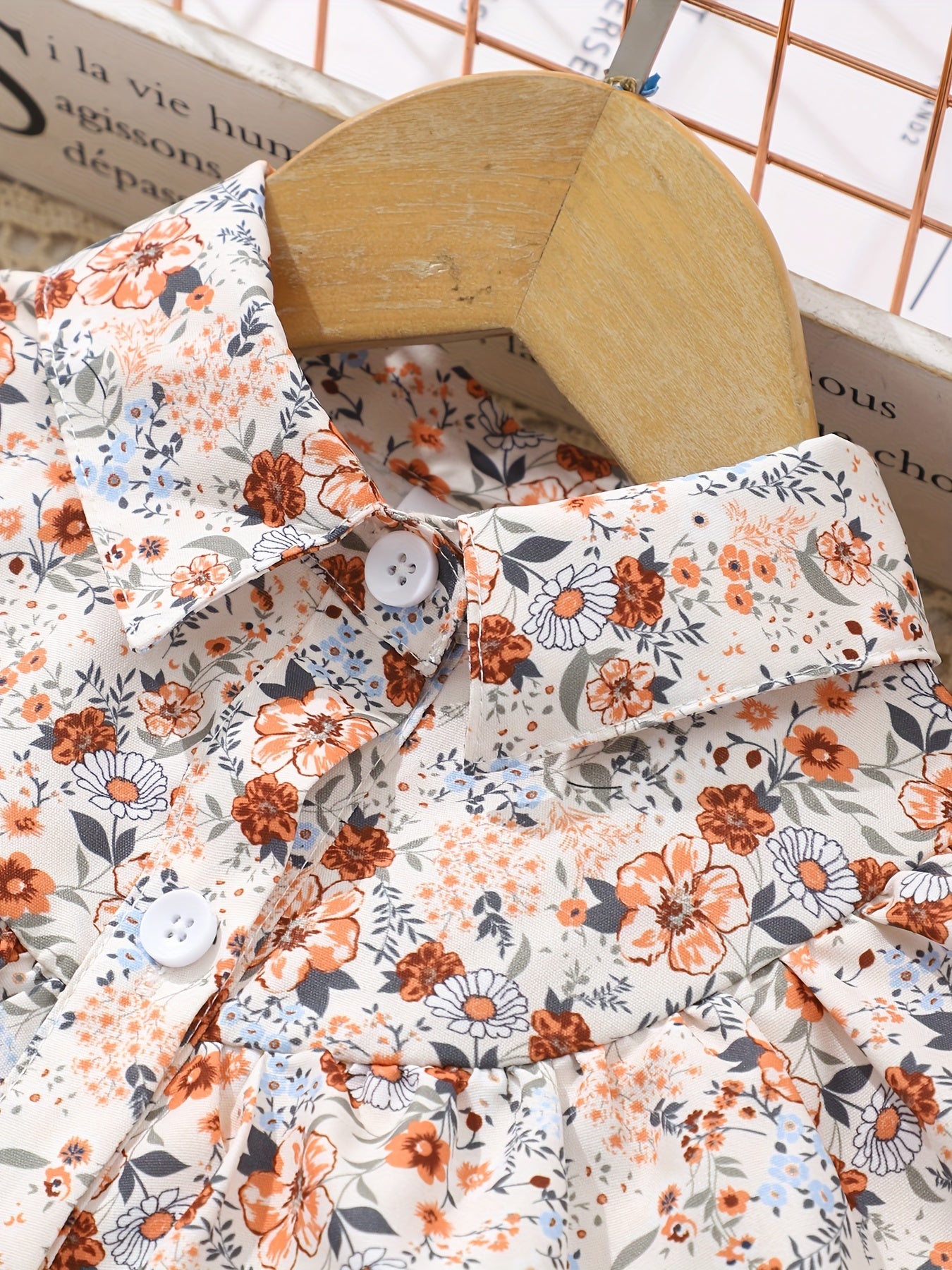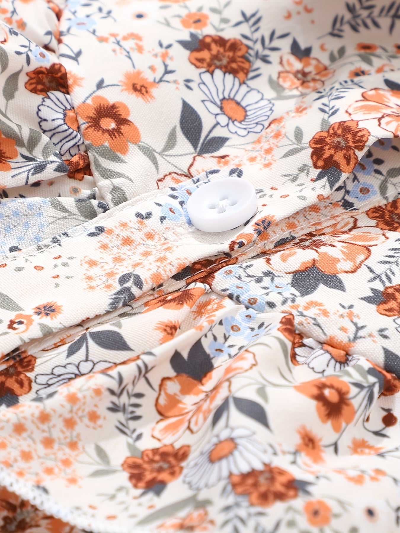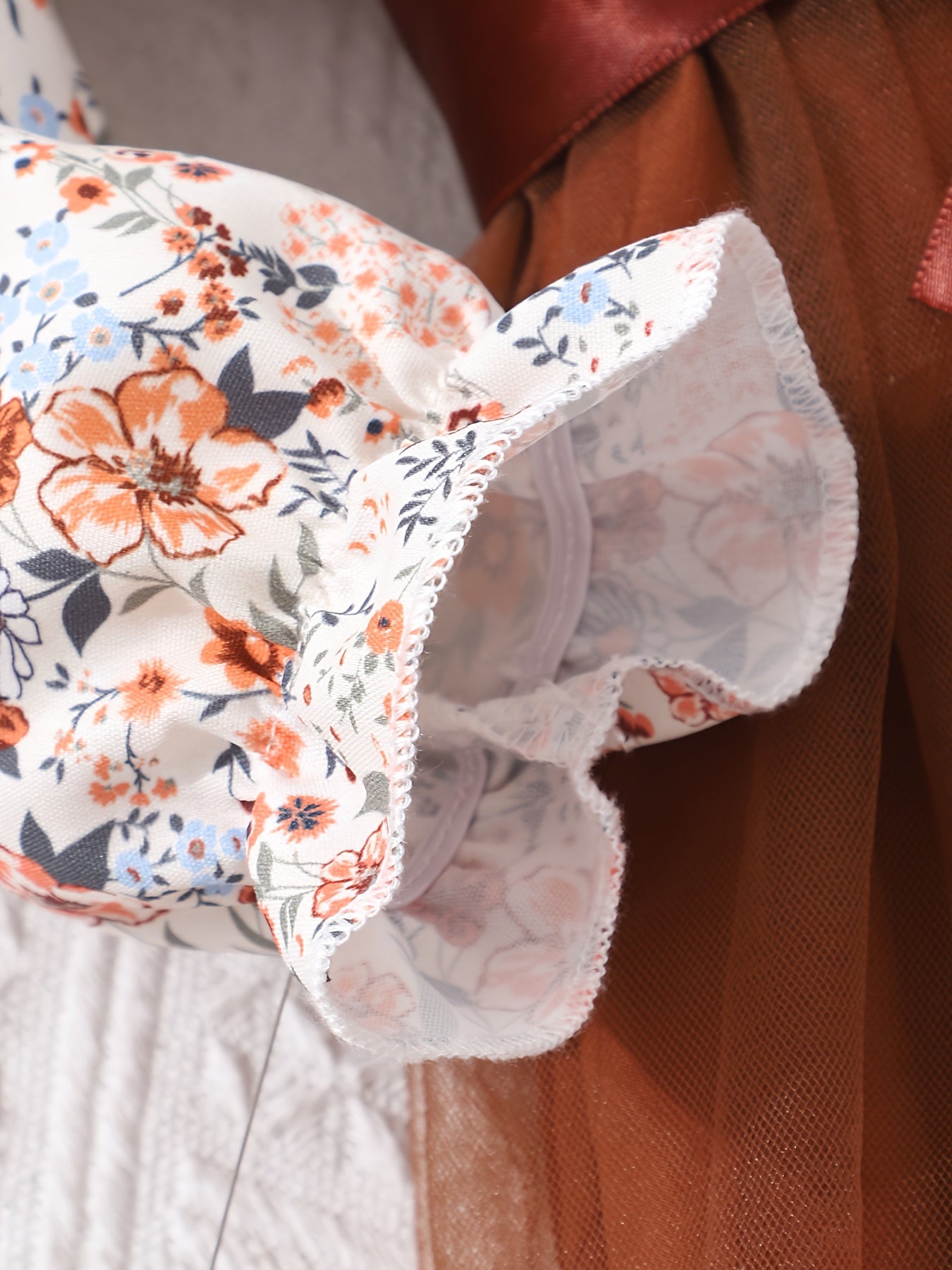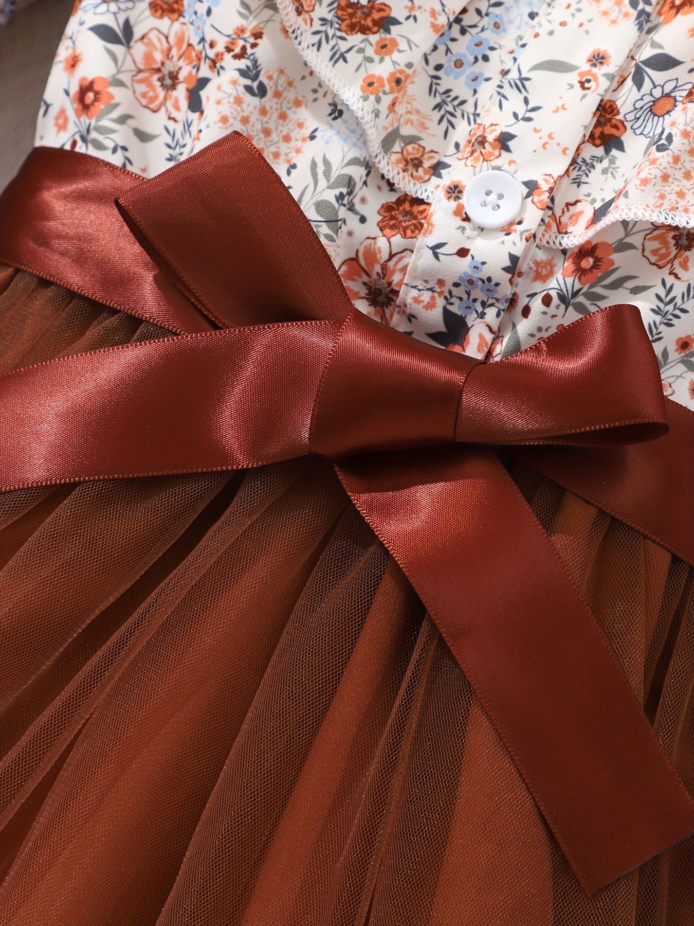 Girls' Long Sleeve Floral Ruffle Dress for Fall and Winter Holidays