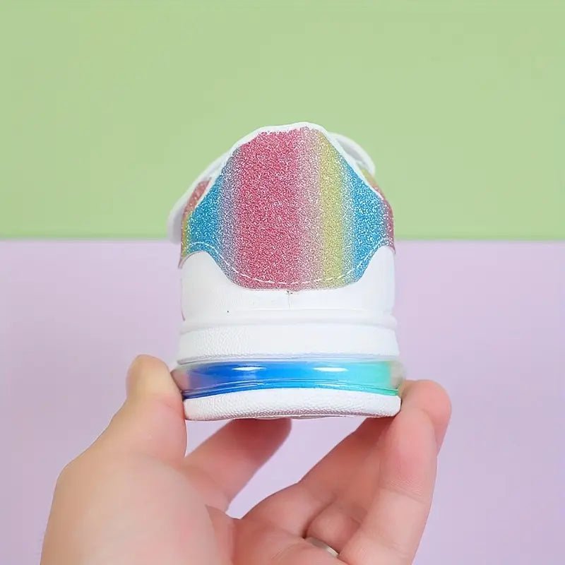 Girls Rainbow Sneakers White Low-Top Shoes with Cloud Pattern Breathable Comfortable Casual