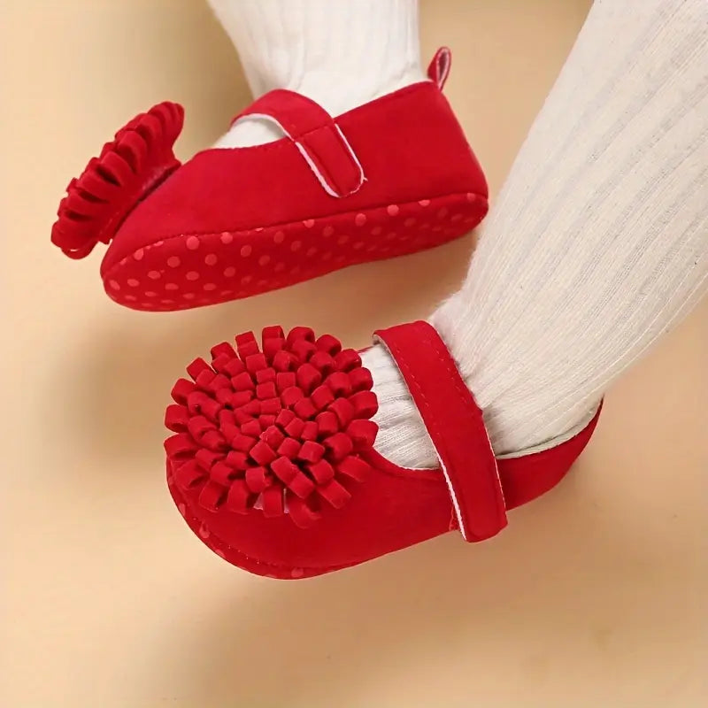 Girls Baby Shoes for First Steps Spring and Autumn Fabric Soft Sole with Flower Decorations