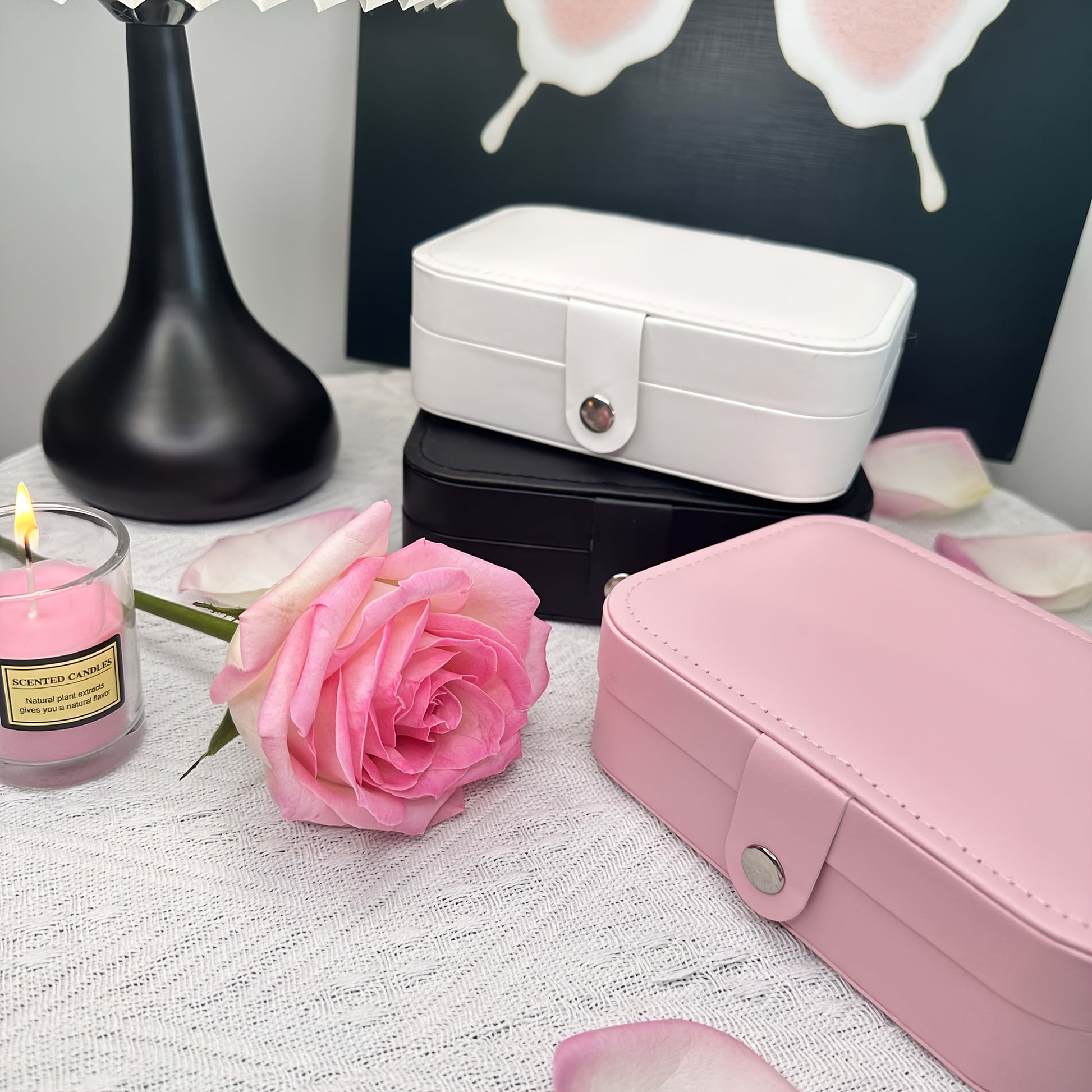 Faux Leather Jewelry Organizer Box with Double Layer and Zipper for Earrings Necklaces Rings