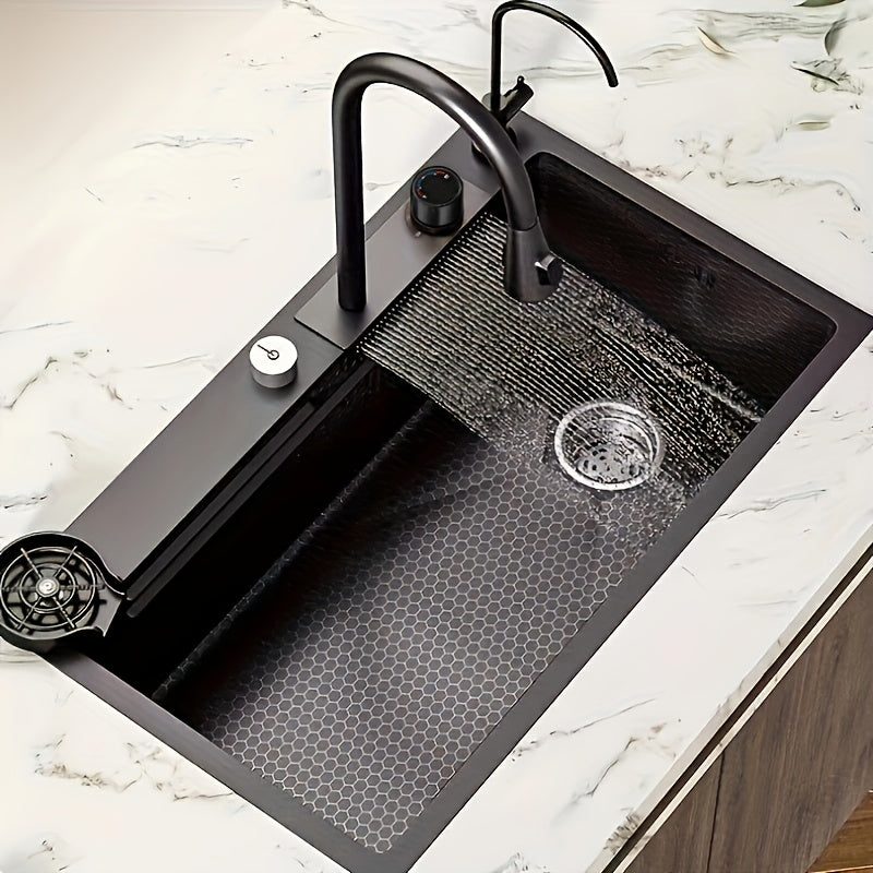 Glam Stainless Steel Kitchen Sink with Integrated Faucet No-Rim Drop-In Right Drain