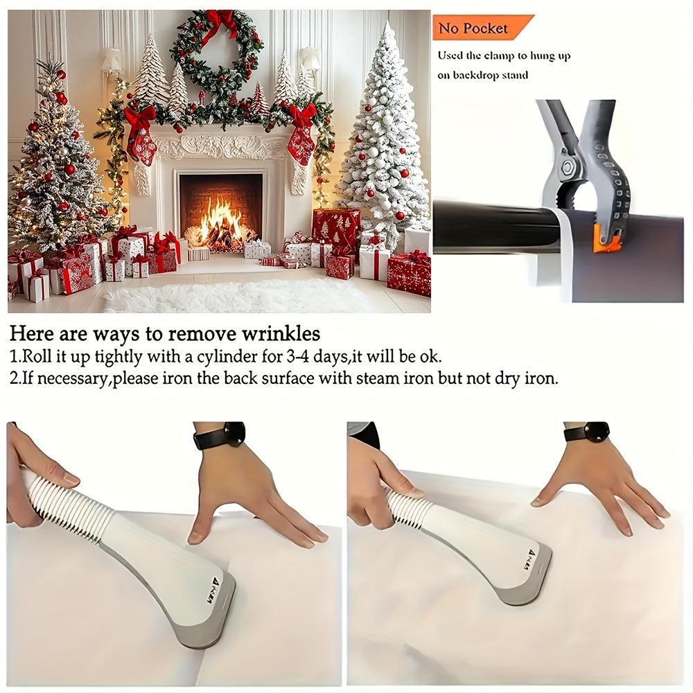 Christmas Fireplace Backdrop Polyester Holiday Photo Booth Decor