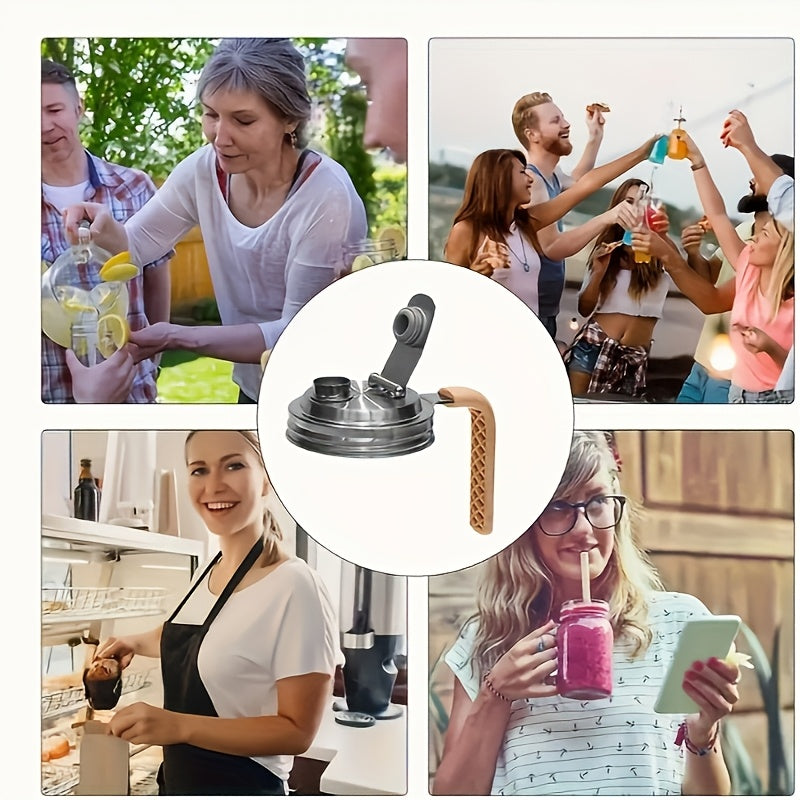 Stainless Steel Jar Lid with Handle and Straw Opening for 86mm Regular Mouth Jars
