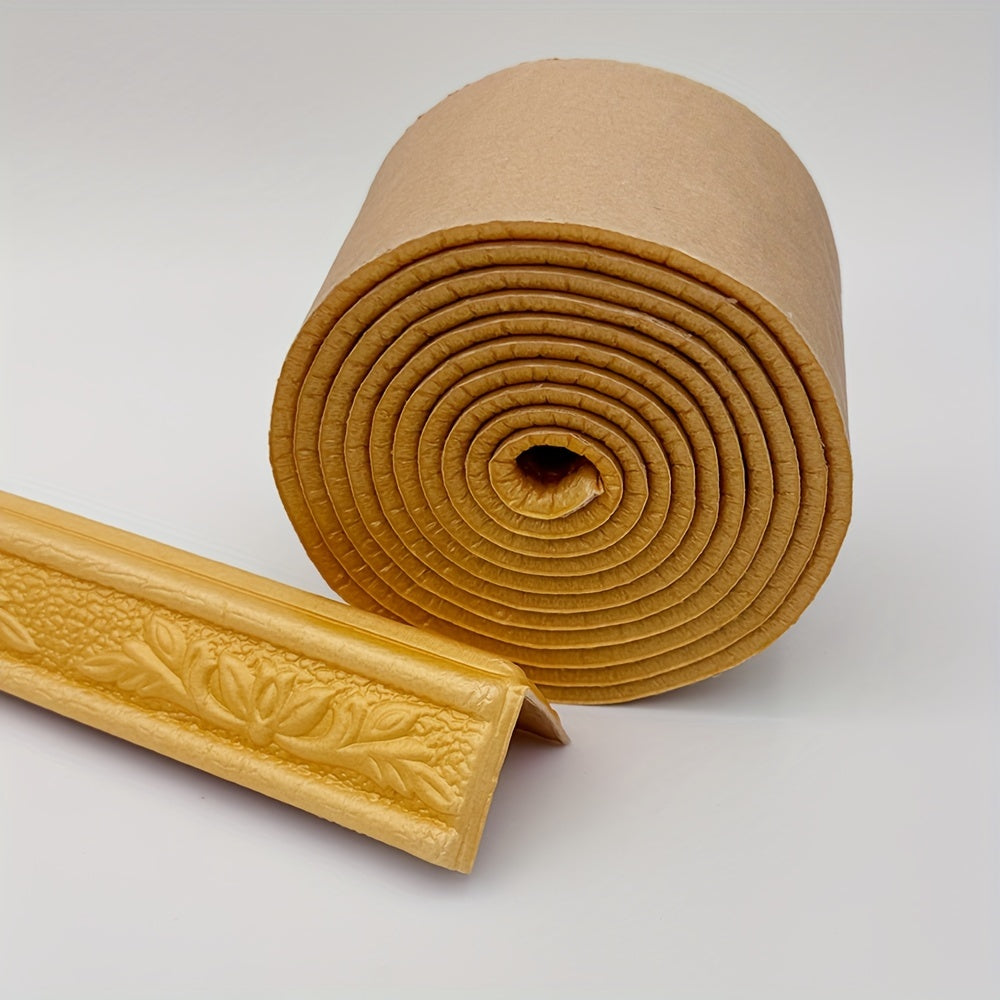 Golden Floral Self-Adhesive Vinyl Wall Trim with Leaf Pattern for Ceilings and Walls 230cmx8cm