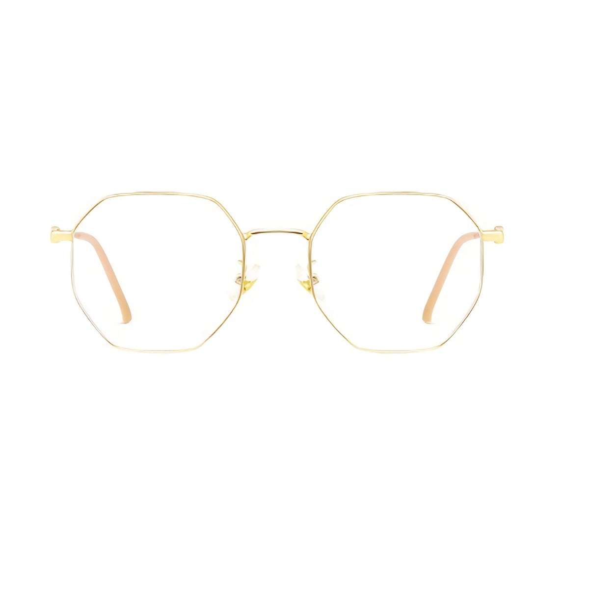 Oversized Gold-Tone Y2K Polygonal Frame Glasses with Polycarbonate Lenses and Metal Hinges