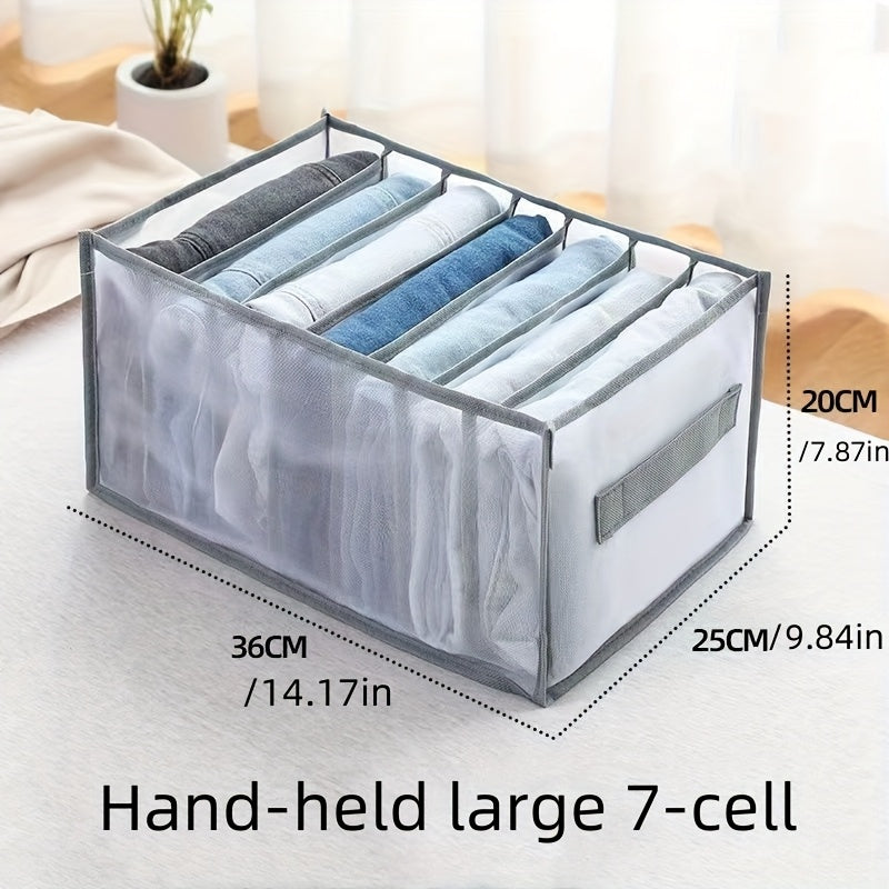 Grey Wardrobe Organizer with Handle, 7-Grid Drawer Divider for Clothes