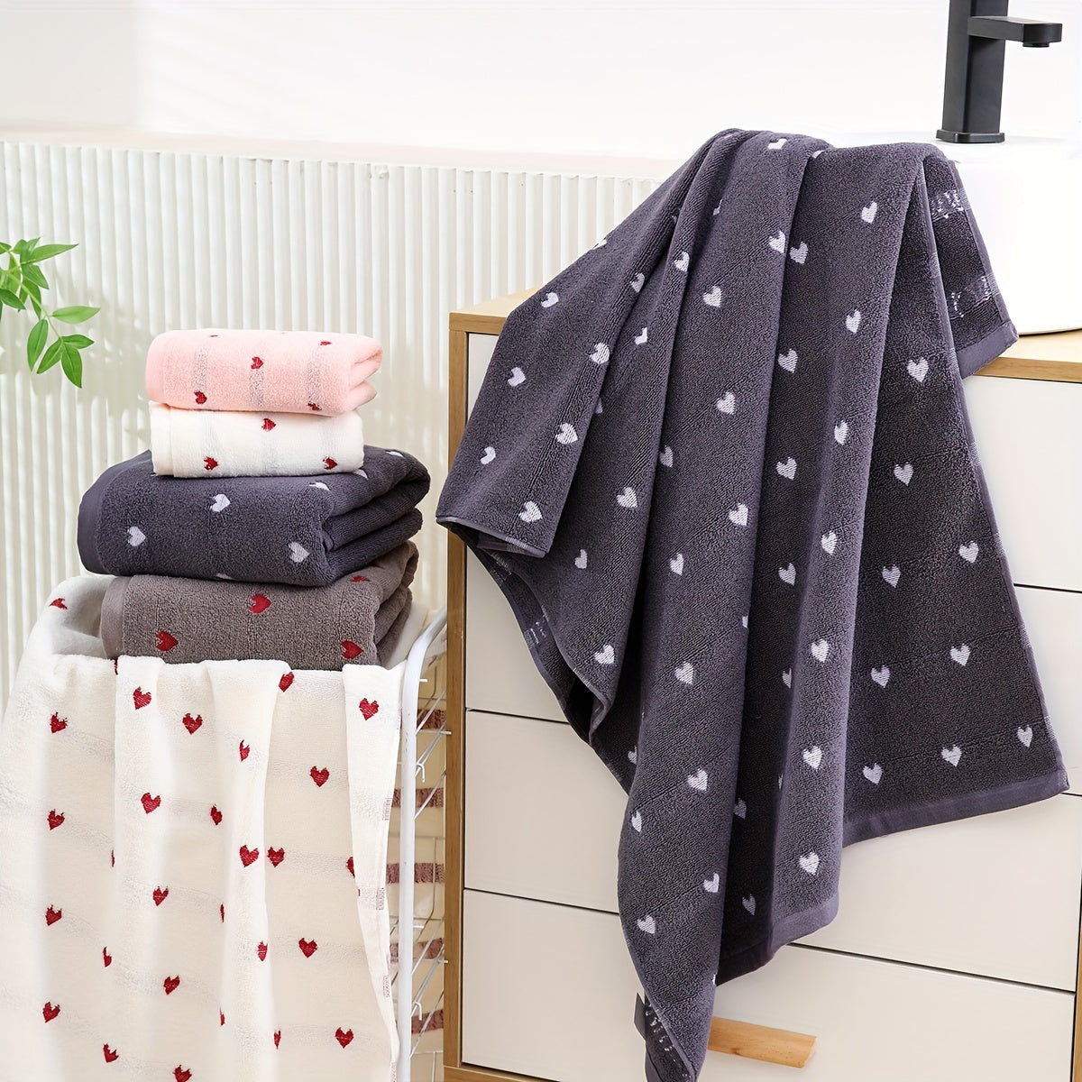 Heart Pattern Cotton Bath Towel Absorbent Quick-Drying Soft Thick for Home Bathroom