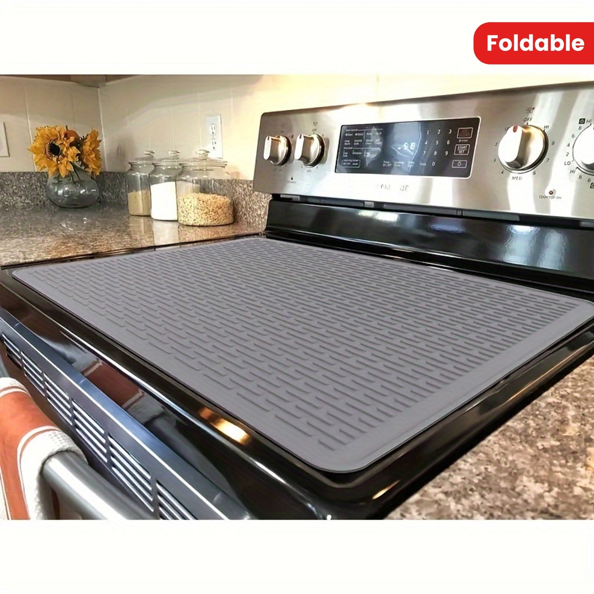 Silicone Stove Top Cover for Ceramic and Glass Cooktops Foldable Kitchen Mat for Drying Dishes and Oven Use