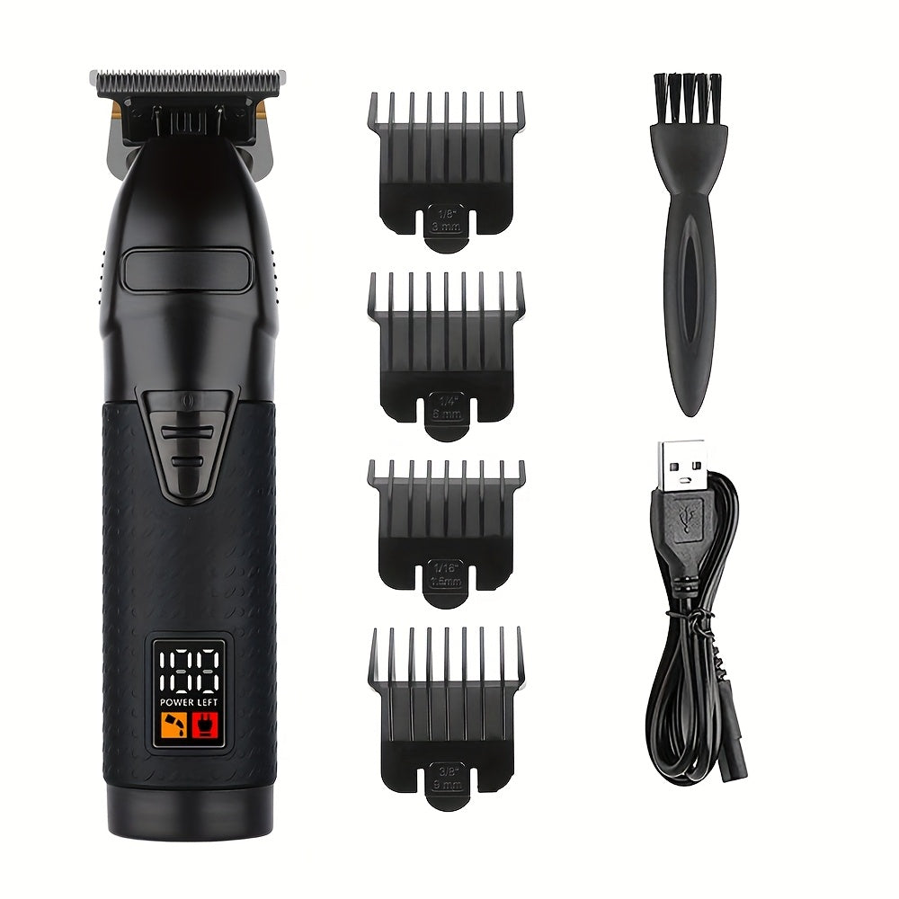 Electric Hair Trimmer with LED Display Rechargeable Lithium Battery T-Shaped Blade for Barbers and Salons