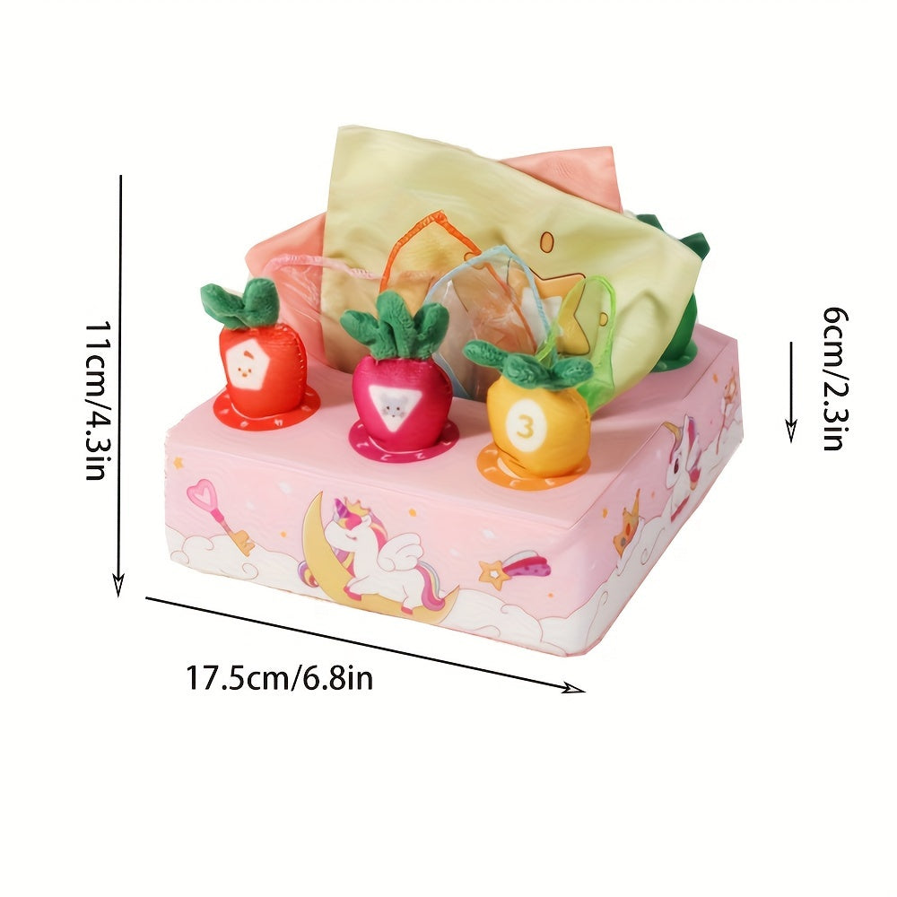 Youngsters Sensory Toy 2-in-1 Tissue Box and Radish Pulling Game Crinkly Plush