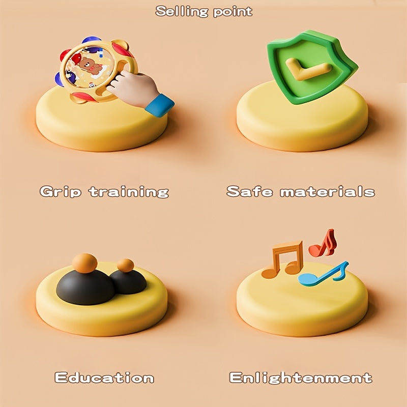 Baby Musical Toy Hand Drum with Rattle for Toddlers Red Yellow 12 Months+