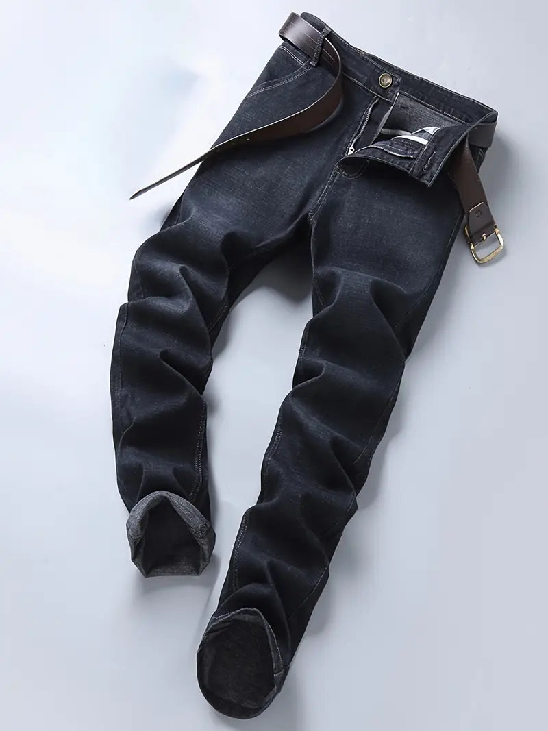 Men's All-Season Stretch Denim Pants Regular Fit Solid Color Washed Finish